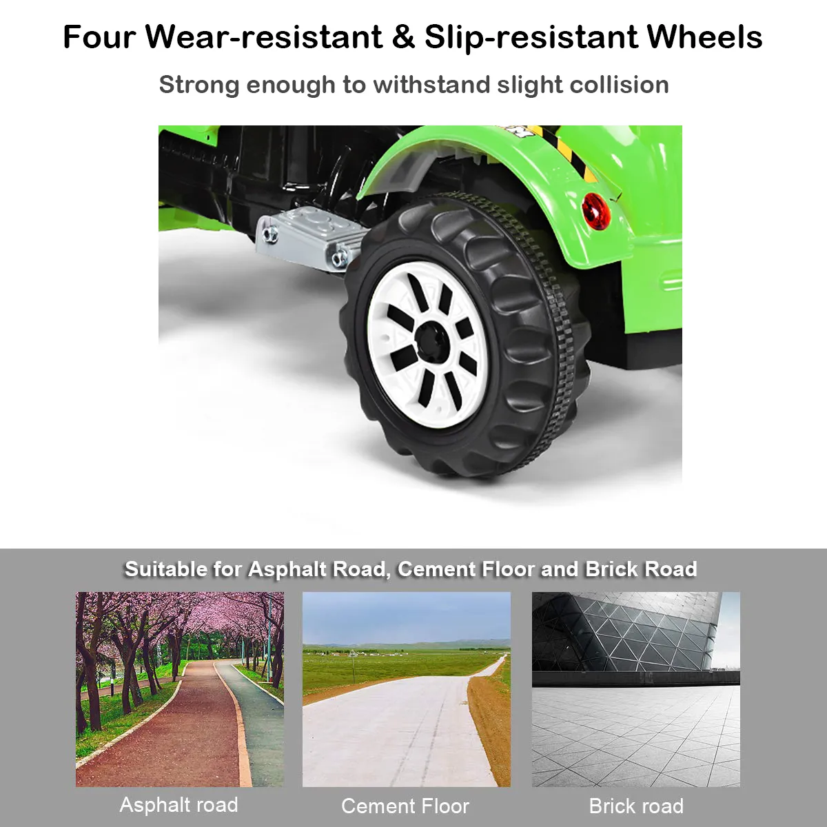 De veiligheid van uw kinderen is uitgekeken op met 4 dikke en slijtvaste wielen, evenals de stevige veiligheidsgordel. Keuze uit 2 snelheden, realistische vooruitzichten met volledig functionerende arm, en laadschop die kinderen de echt bevredigende rollenspel ervaring geven. Deze rijden op auto geeft de kinderen de vrijheid om de auto te besturen met stuur en pedaal. Featuring met pp materiaal en staal, zal deze auto uw kinderen gelukkig maken tijdens zijn lange tijd dienst.