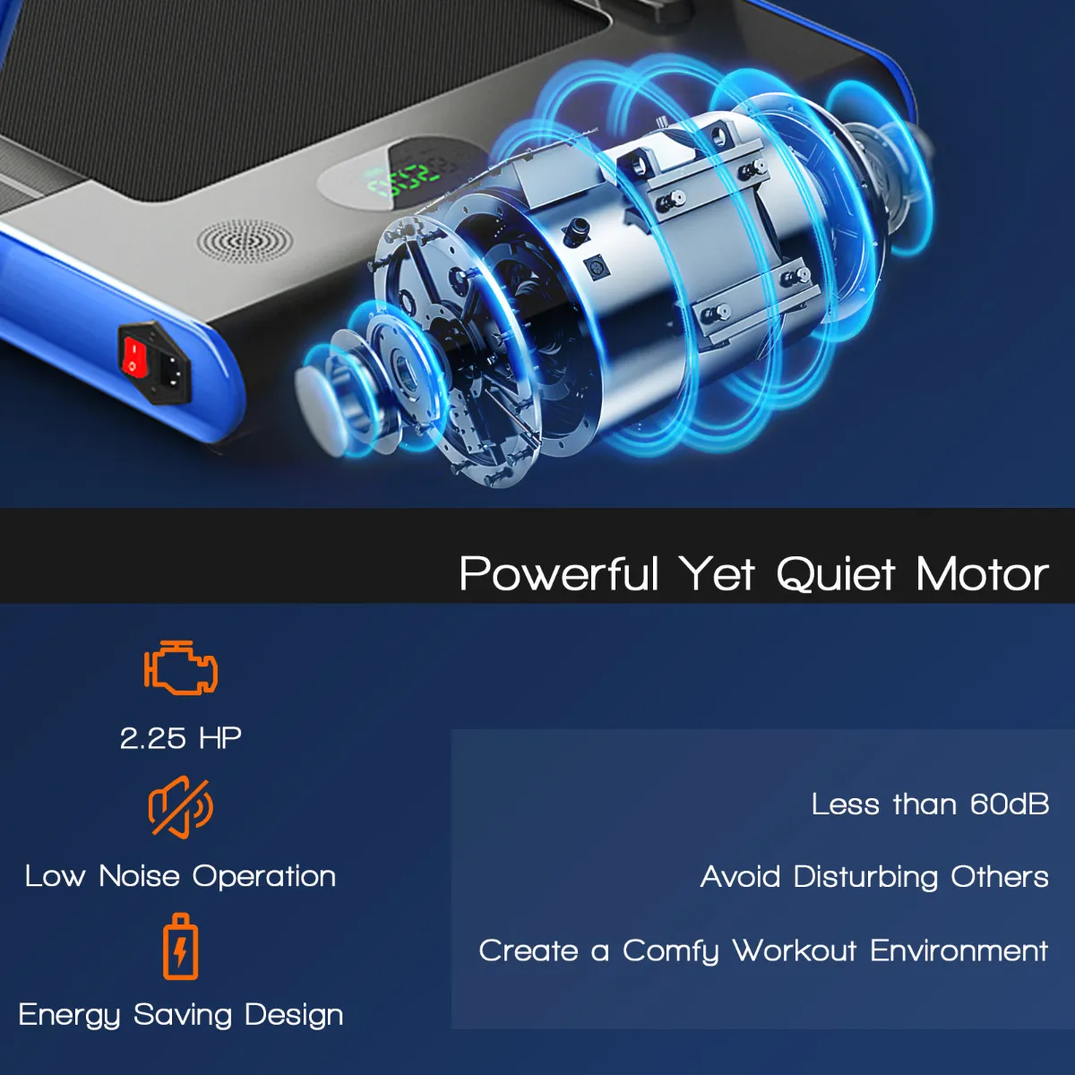 Innovatieve snelheidsaanpassing: De krachtige maar geluidsarme 2,25HP motor brengt hoge prestaties zonder anderen te storen. Bovendien, wanneer de riser is neergeklapt, is het in de loopstand van 1km/u- 4km/u. Met het statief omhoog kan de 2-in-1 opvouwbare loopband een snelheid van 1km/u- 12km/u halen om aan de verschillende behoeften van gebruikers te voldoen.