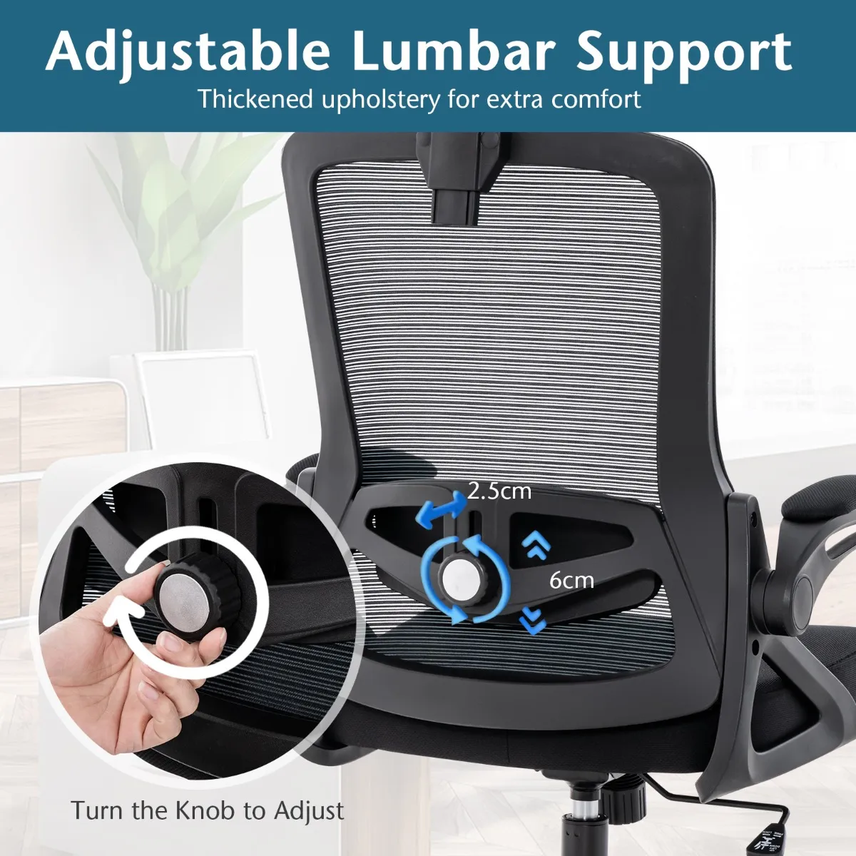 Verbeter je werkplek met onze ergonomische bureaustoel. Geniet van aanpasbare ondersteuning met verstelbare hoofdsteun en armleuningen, plus gewatteerde lendensteun voor een betere zitervaring. Je kunt aan de knop draaien om de lendensteun eenvoudig te verstellen. Bovendien biedt de ademende netrugleuning met gebogen ontwerp en dik kussen de hele dag comfort, terwijl de in hoogte verstelbare functie gebruik op maat mogelijk maakt. Thuis of op kantoor, het elegante, moderne ontwerp past perfect in de omgeving.