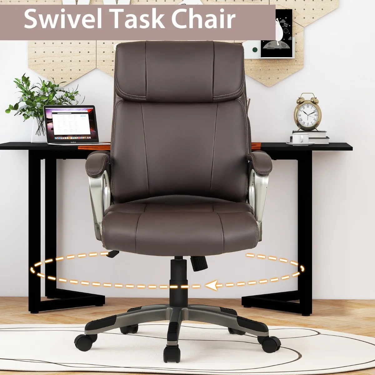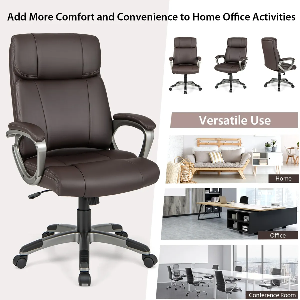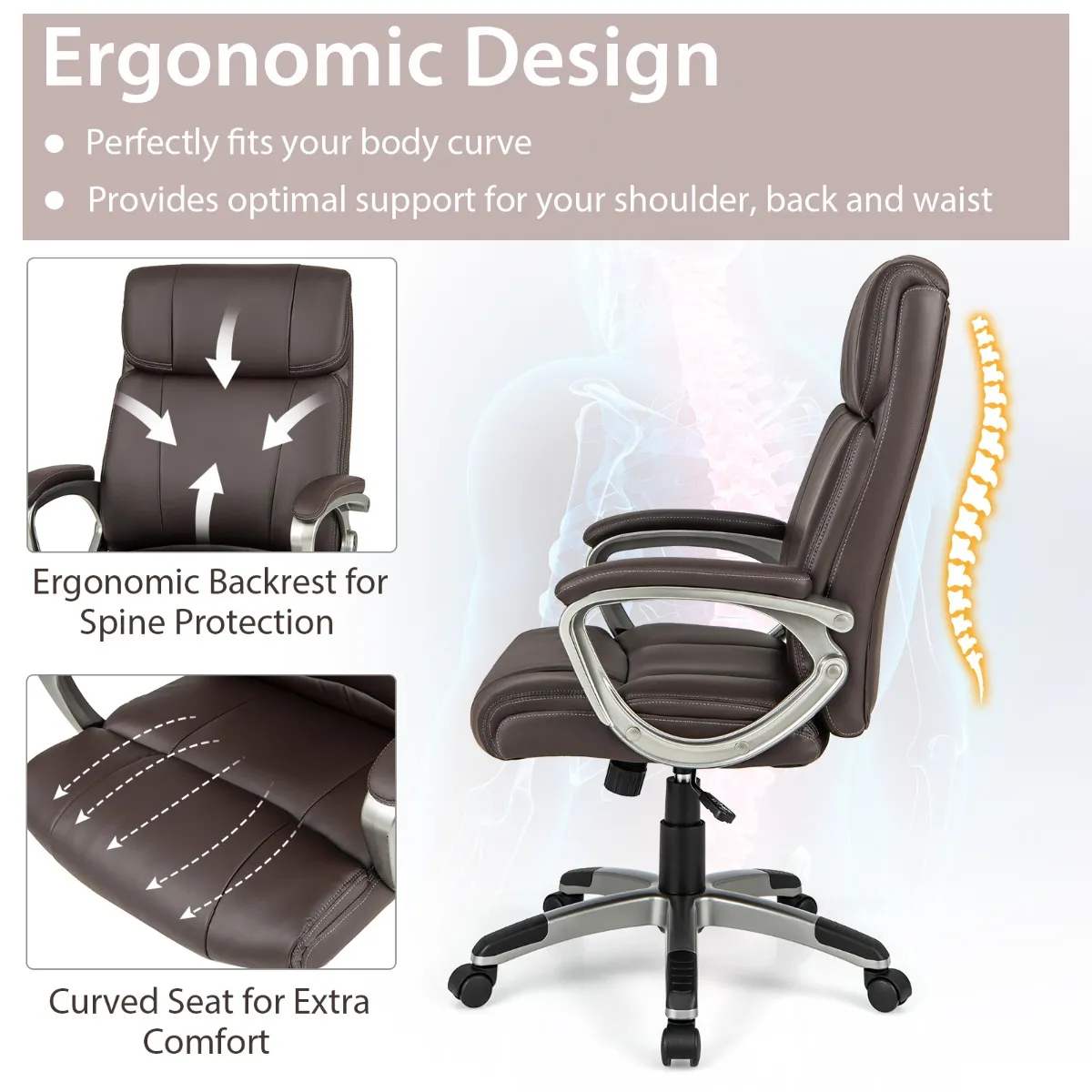 Het is tijd om te ontspannen en vermoeidheid te verminderen. De directiestoel beschikt over een draaibare rugleuning met ergonomisch design om vermoeidheid van de rug te verminderen. Dankzij de in hoogte verstelbare en draaibare zitting biedt de bureaustoel verschillende gebruikers meer comfort en ontspanning. Voor comfortabele bediening is er onder de zitting een schommelspanningsregeling (vast en los) en een hendel (op en neer). Bovendien is de draaistoel gevuld met zeer elastisch schuim en bekleed met huidvriendelijk PU-leer en biedt hij je een aangenaam zitgevoel. Voor grote mobiliteit en comfortabel gebruik zorgen de soepel lopende wielen voor een stillere en eenvoudigere beweging op elke gewenste plaats. Een versterkte 5-klauwvoet en een stabiele gasstaaf verhogen de stabiliteit en veiligheid.