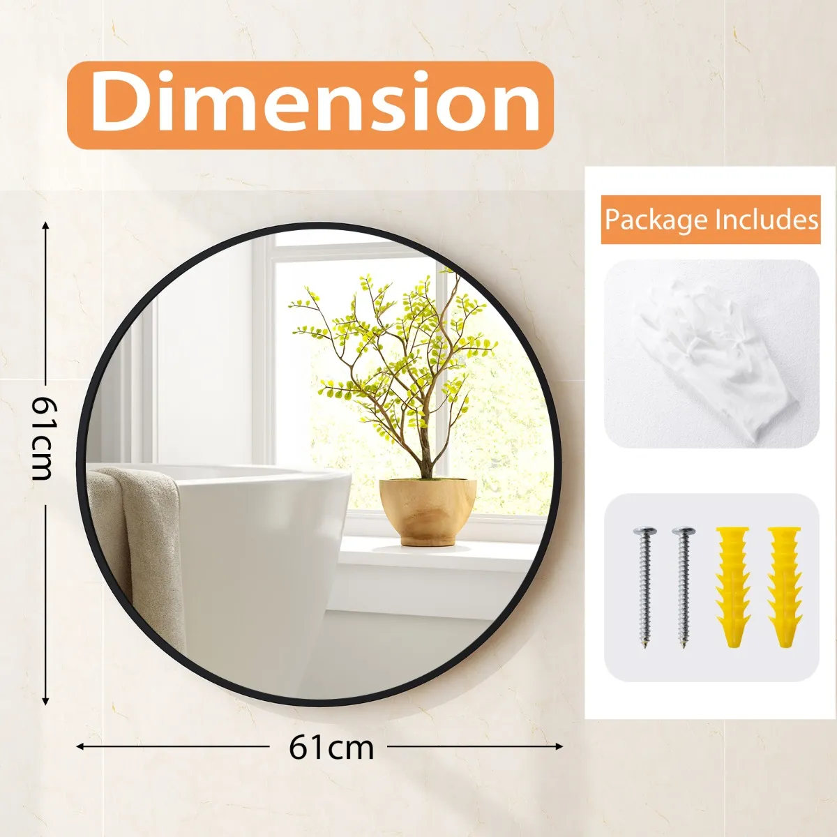 【Eenvoudig te installeren】 De wandspiegel wordt geleverd met alle hardware en instructies die je nodig hebt voor een probleemloze installatie. Stap 1: Boor een gat, plaats het plastic anker en de schroef. Stap 2: hang de spiegel aan de schroef.
