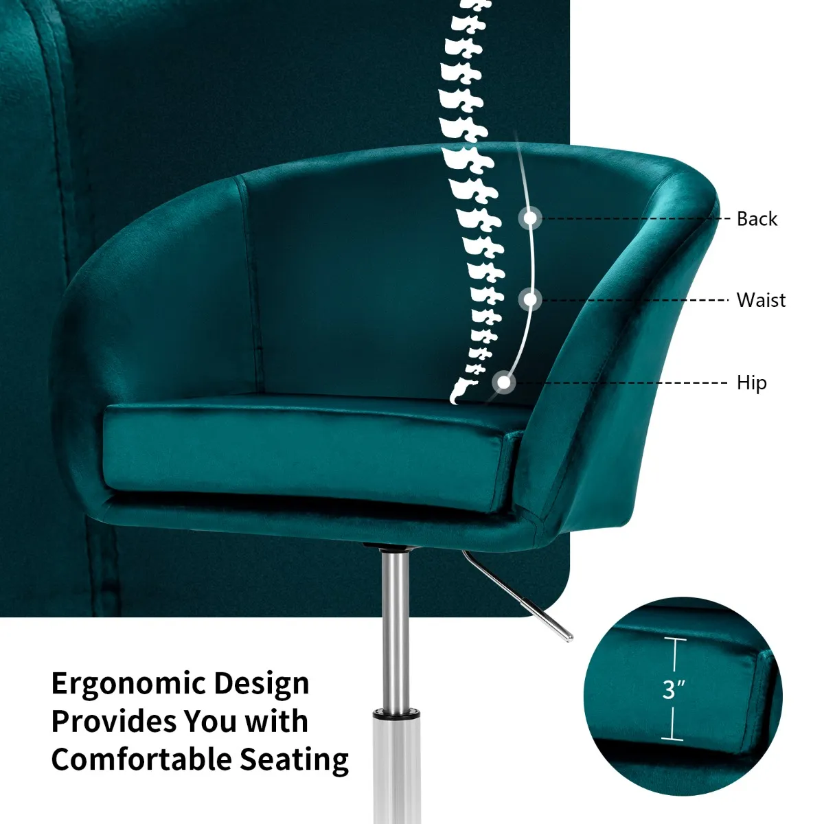 【Comfortabele barkruk】Deze draaibare barkruk is royaal bekleed met sponzen met een hoge dichtheid voor een veerkrachtige zitting. De hele zitting is bekleed met een ademende fluwelen stof die zacht aanvoelt en ook mooi is om naar te kijken.