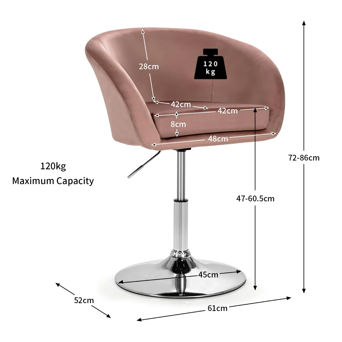 Deze barkruk heeft een verstelbare hoogte van 72 tot 86 cm, geschikt voor de meeste hoge tafels en bureaus. Met een hoogwaardige gaslift kun je de hoogte soepel en geruisloos verstellen door simpelweg de hendel op te tillen. Deze stoel heeft ook een 360 graden draaifunctie voor extra functionaliteit. Deze stabiele barkruk is gemaakt van een metalen frame met een gegalvaniseerd onderstel en zal je lang van dienst zijn. Om een comfortabele zit te garanderen is deze barstoel voorzien van sponzen met een hoge dichtheid voor een langdurige rondheid. En bekleed met zachte fluwelen stof voelt deze stoel aangenaam aan. En de grote zitting, ronde rugleuning en comfortabele armleuningen zijn ontworpen voor ergonomisch zitten. Bovendien heeft hij een voetensteun om krassen op de vloer te voorkomen.