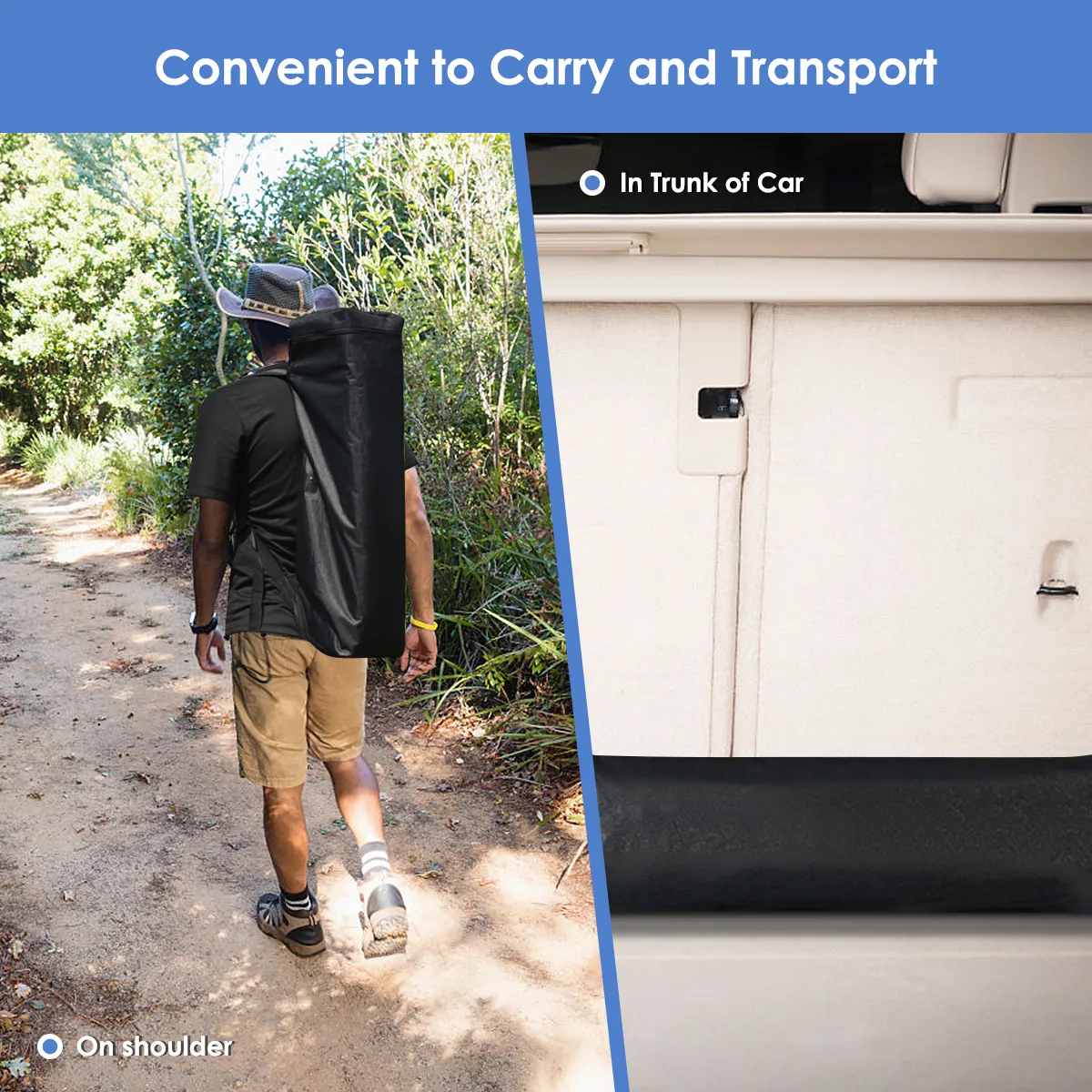Praktische draagtas: Onze tent kan gemakkelijk opgevouwen en compact opgeborgen worden. Er wordt ook een tas meegeleverd voor eenvoudig transport, bijvoorbeeld in de kofferbak.