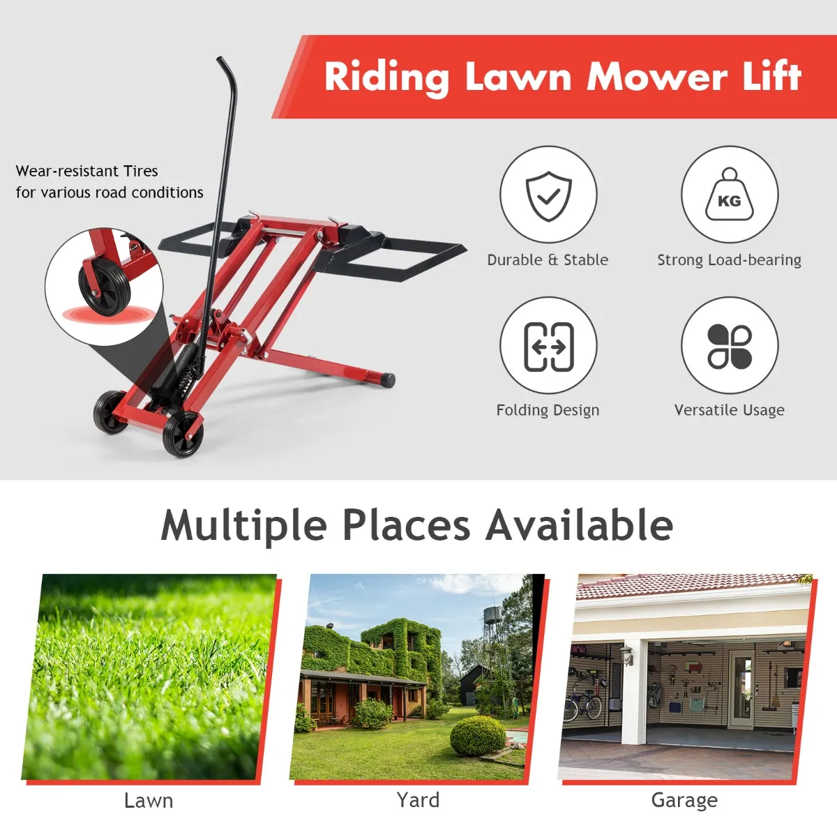 Stabiel frame biedt een groot draagvermogen: De van gelast en zeer belastbaar massief metaal gemaakte hefbok kan 225 kg dragen, zodat je je geen zorgen hoeft te maken dat de grasmaaier te zwaar is voor een reparatie. Bovendien roest het gelakte oppervlak niet zo gemakkelijk.