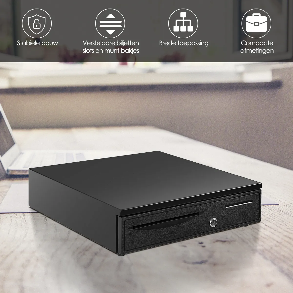 【Opening】Deze compacte, stevige kassalade kan elektrisch worden geopend door middel van een kassabonprinter of een kassasysteem. Als alternatief kan de kassalade ook met de sleutel worden geopend.