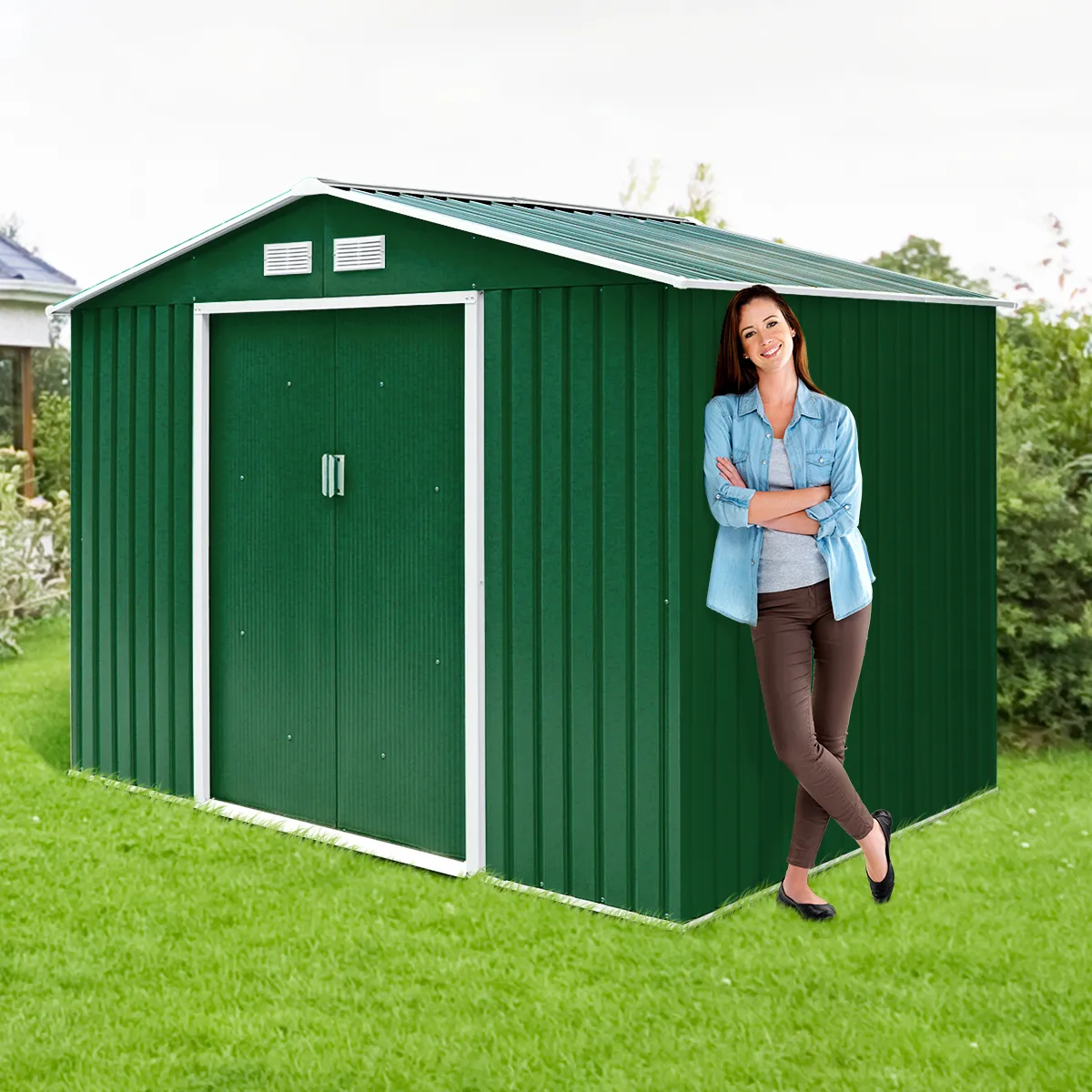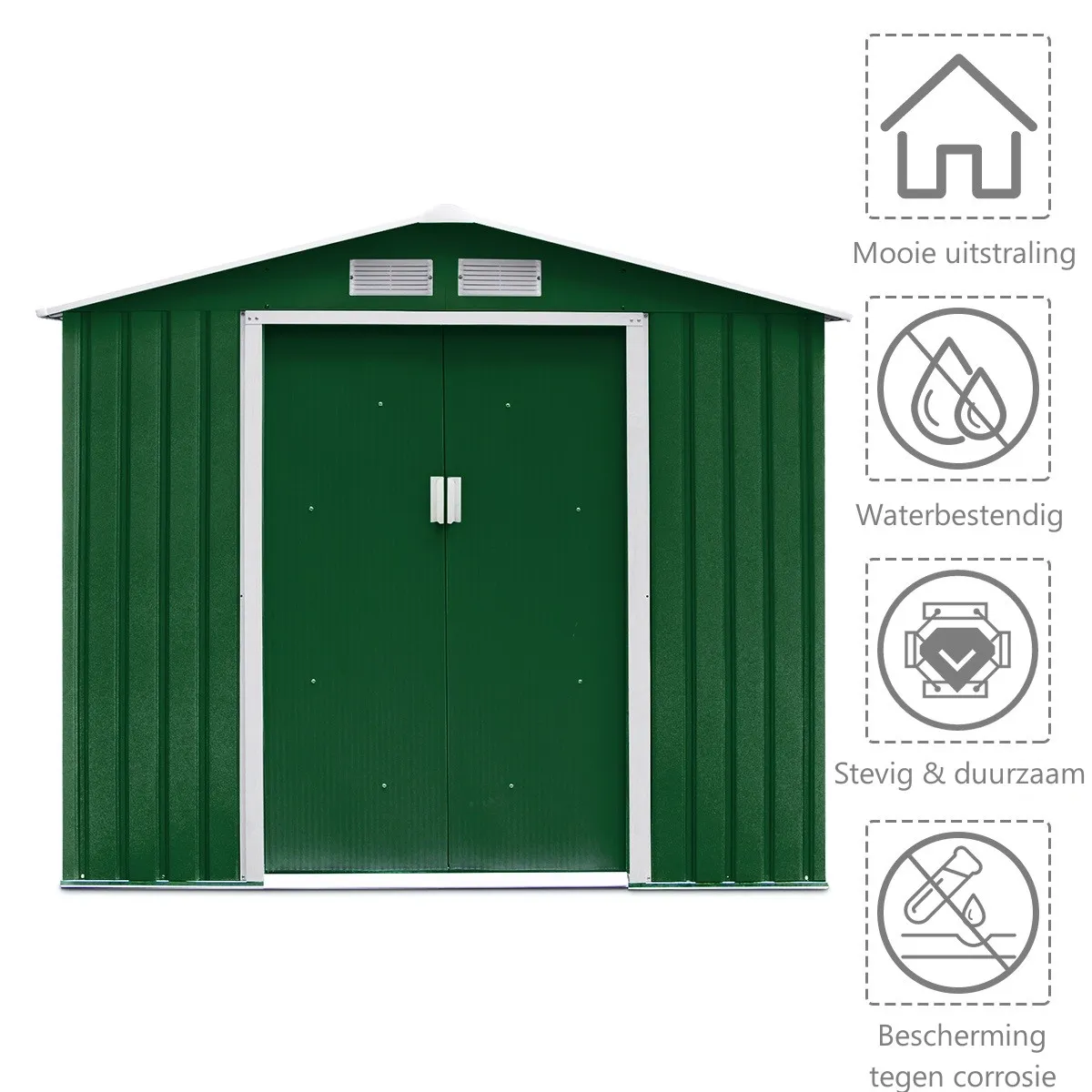 Dit onze nieuwe loods van de tuinopslag, die voor de opslag van tuingereedschap perfect is. Wanneer behoefte extra bergruimte, het uw praktische en economische oplossing zou zijn. Dit huis van de tuinopslag kan genoeg bergruimte voor uw gazon en tuinambachten, fietsen, poollevering en andere punten verstrekken. Duurzame stalen frames constructie is zeer stevig en gegalvaniseerde stalen platen zijn bestand tegen corrosie. Dit huisje heeft twee flexibele schuifdeuren en twee rolluiken, die helpen om de ophoping van vocht in het huisje te verminderen. Aarzel niet om het te kopen.