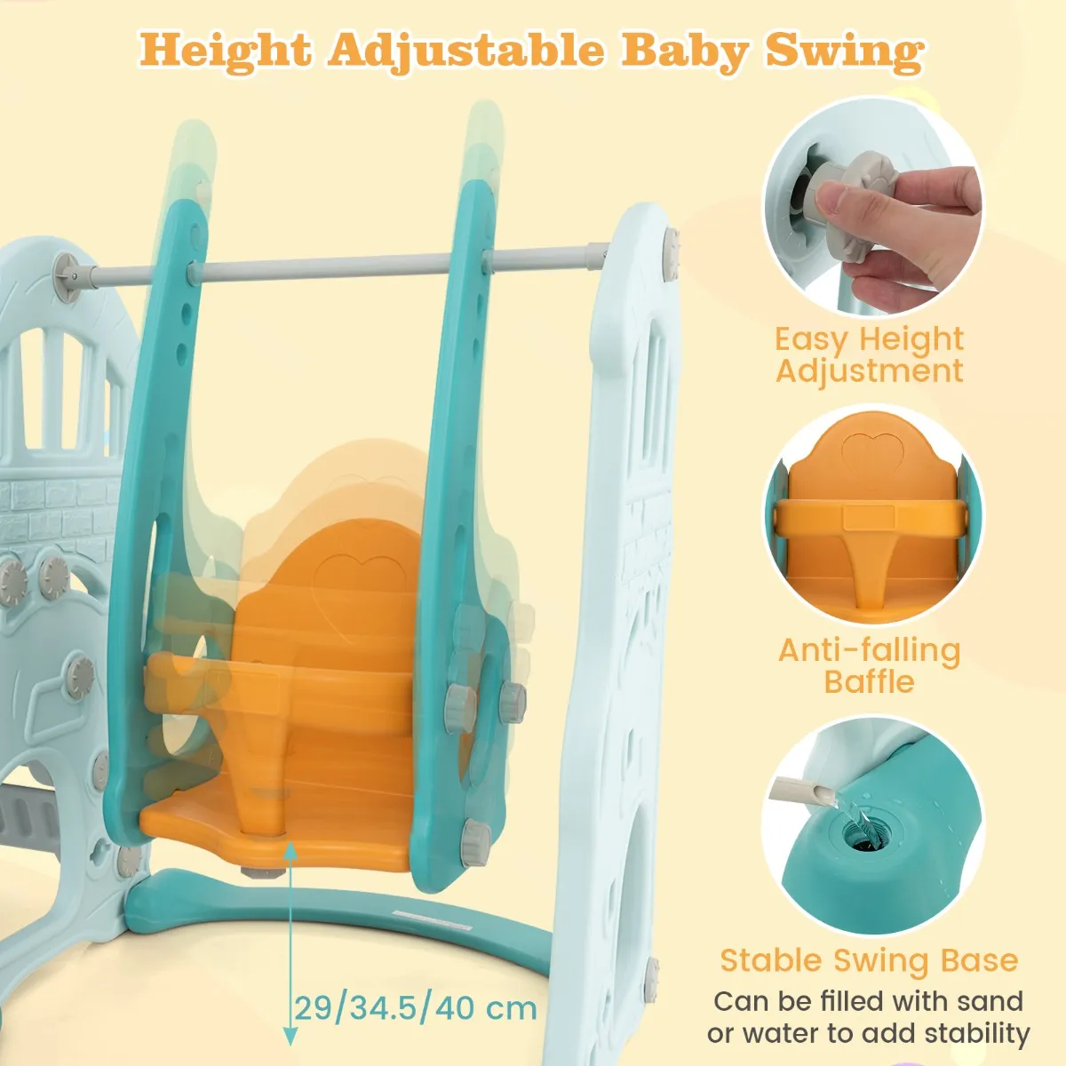 Onze glijbaan- en schommelset voor peuters is eenvoudig in hoogte verstelbaar, waardoor ze ondersteund worden terwijl ze groeien. De glijbaan heeft een redelijke zonering en verhoogde leuningen en kan ruimtebesparend worden ingeklapt. Onze klimladder is volledig afgesloten en veilig om mee te spelen. De basketbalring voegt meer speelmogelijkheden toe. Deze set is gemaakt van BPA-vrije materialen en creëert een veilige omgeving voor uw kinderen. Het bevordert de verbeeldingskracht, praktische vaardigheden en sociale vaardigheden, ongeacht of het in een slaapkamer of woonkamer wordt geplaatst.