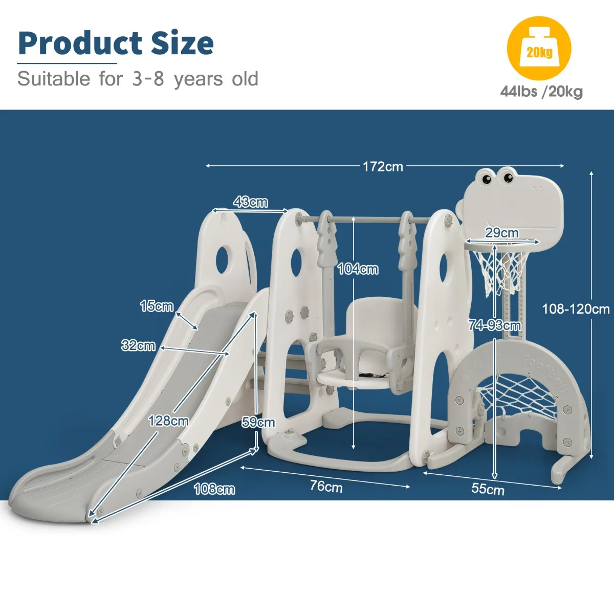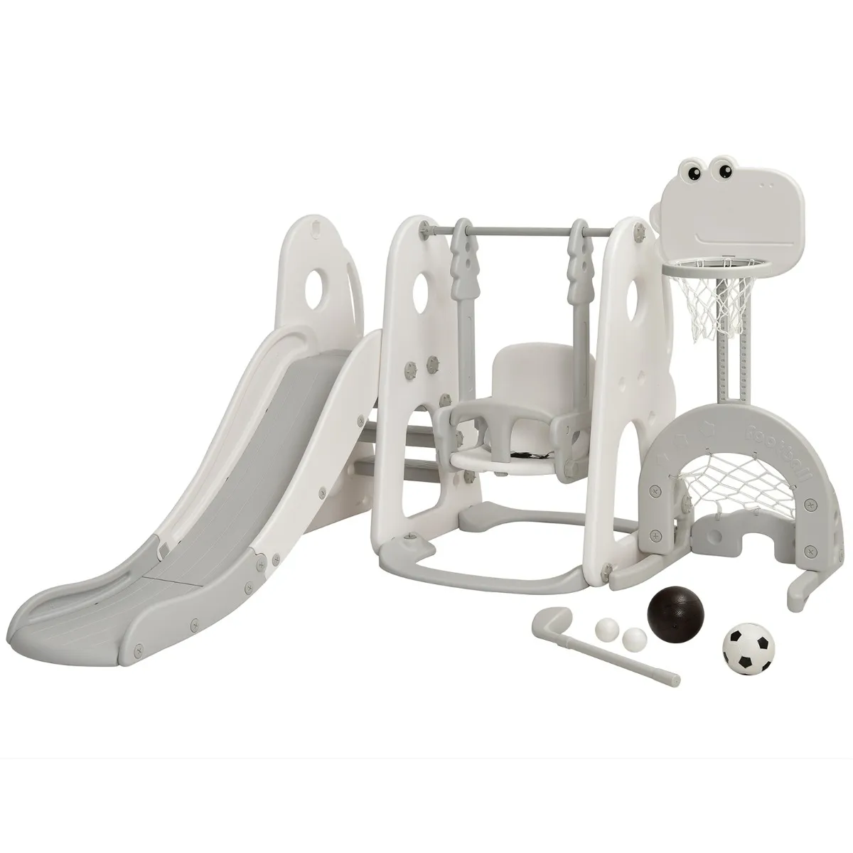 - Verpakking: 1 x Glijbaan en schommelset1 x Basketbal1 x Voetbal2 x Golf1 x Golfclub1 x Instructiefolder