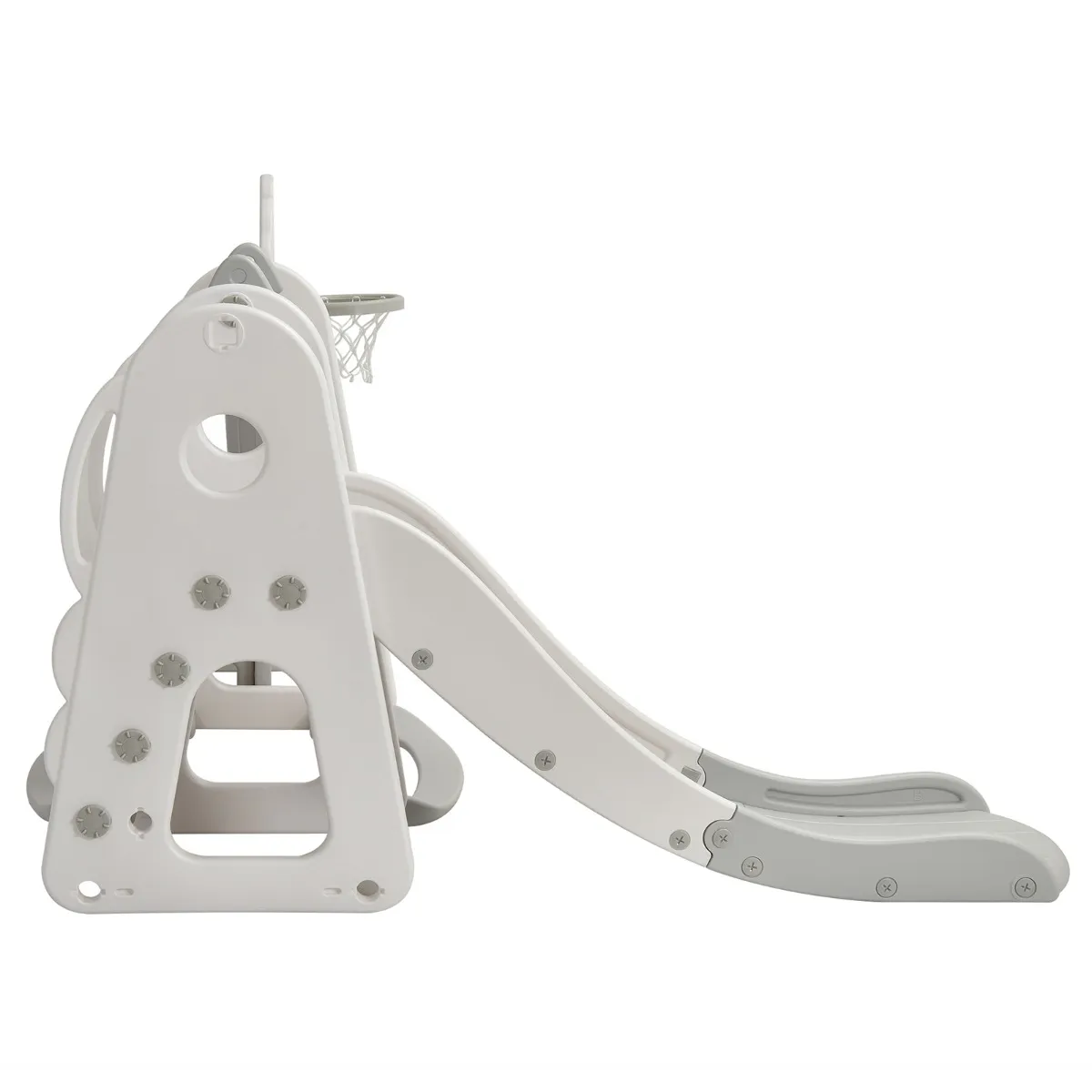 Veilige glijbaan : De glijbaan heeft een zacht ontwerp met een versnellingszone en een bufferzone, zodat je kind soepel kan glijden en veilig kan landen. Bovendien zorgen het ontwerp van de veiligheidsgordel en de afneembare T-vormige beschermkap voor veiligheid tijdens het spelen.