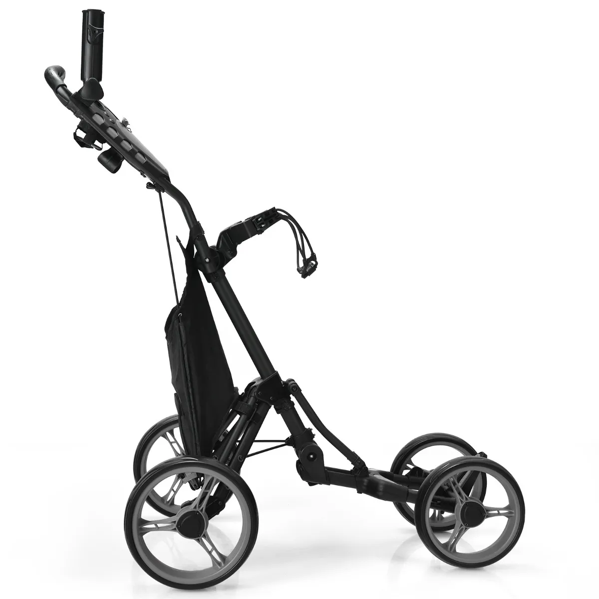 De kar met vier wielen is stabieler dan het model met drie wielen en kan worden ingeklapt tot een kleiner formaat zodat je hem makkelijker kunt opbergen