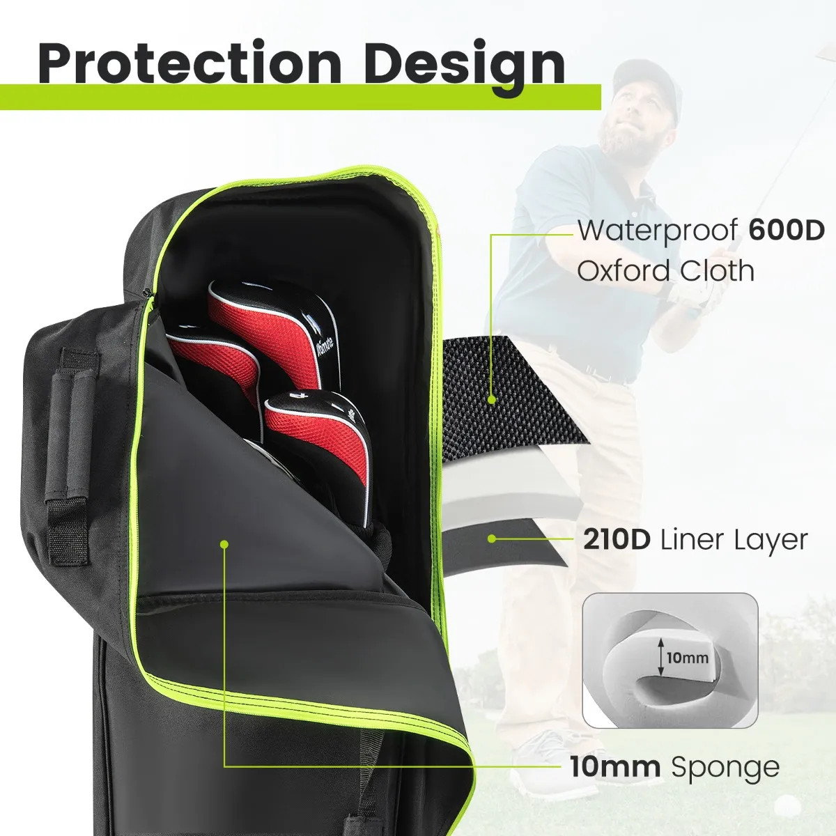【Volledige bescherming】Slijtvaste, waterdichte Oxford stof bedekt de hele golftas, en de 10 mm sponsvulling en voering bieden extra bescherming voor golfclubs tijdens het vervoer.