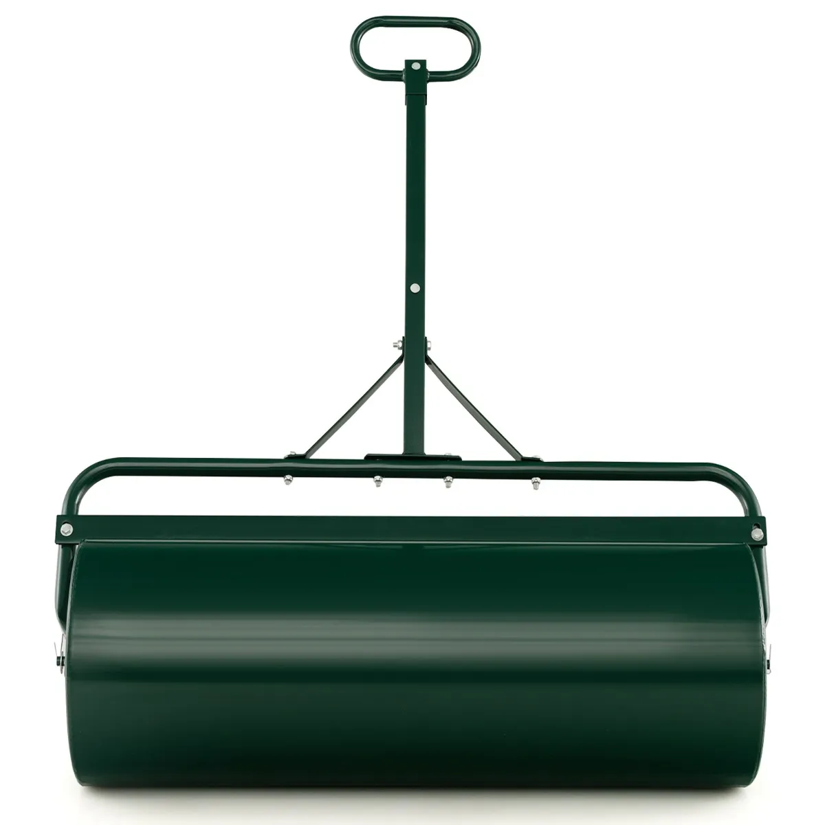 Onze 2-in-1 multifunctionele gazonwals is uitgerust met een afneembare handgreep, waarmee je hem niet alleen vooruit kunt schuiven, maar ook op een tractor kunt aansluiten om hem vooruit te bewegen. Hij bestaat uit een robuust gepoedercoat metalen frame, dat roestvrij en weerbestendig is en een langdurig gebruik buitenshuis garandeert. Bovendien bevindt zich aan de zijkant een afvoergat, waarmee je de gazonwals met zand of water (tot 113 l) kunt vullen. Deze veelzijdige vloerroller kan een perfecte manier zijn om je gazon platter te maken.