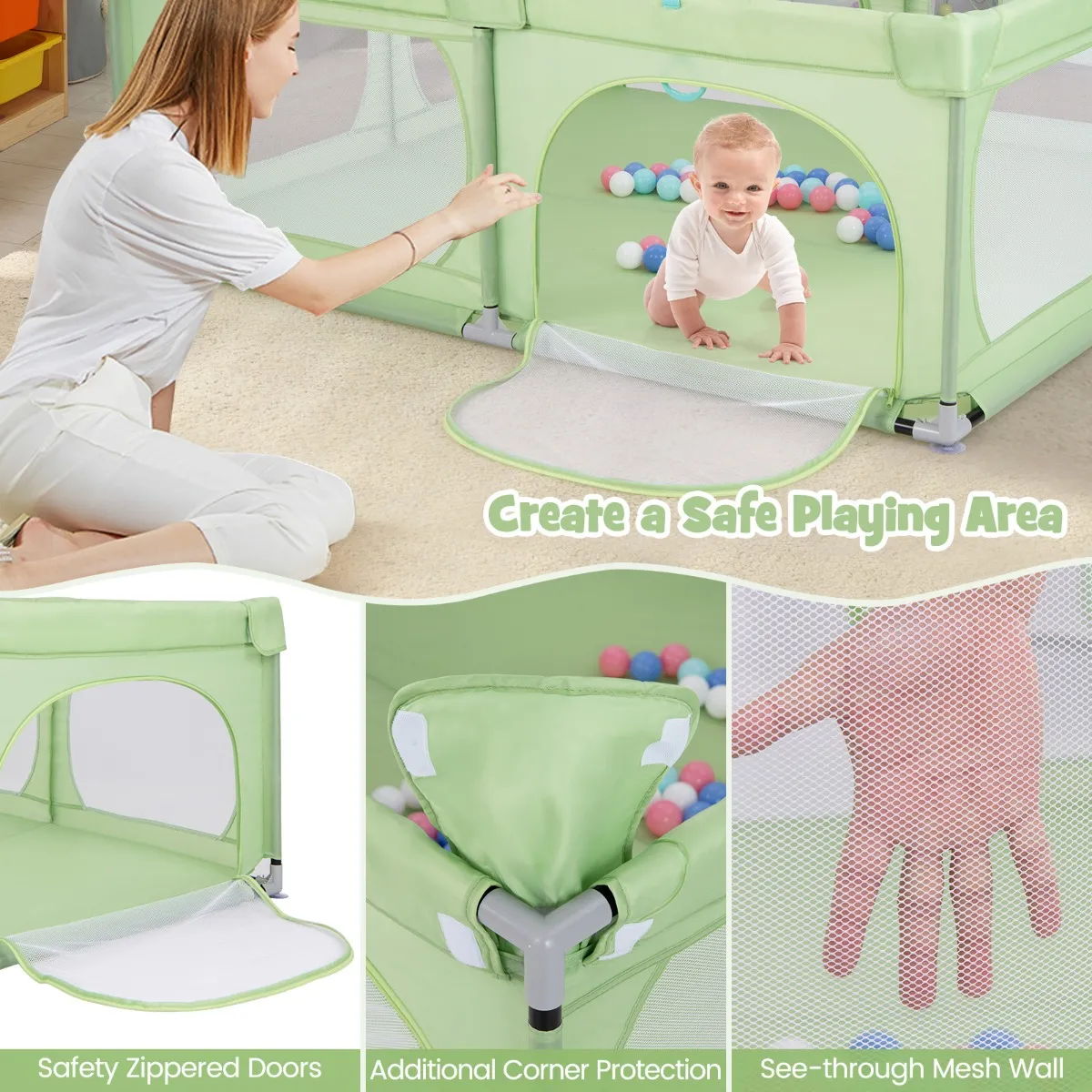 【Babyveilige speelruimte】Veiligheidsdeuren met rits voorkomen dat baby’s uit de speelruimte kunnen. Je baby kan de deur niet alleen openen. Extra hoekbescherming voorkomt botsingen. Bovendien kunnen ouders dankzij de doorzichtige gaaswand hun baby’s in de gaten houden als ze in de box spelen.