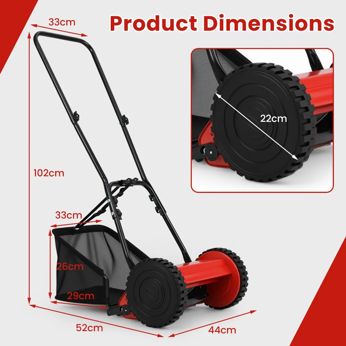 [Eenvoudige bediening en beweging]: De grasmaaier is uitgerust met een brede U-vormige handgreep, die een comfortabele en ergonomische handgreep biedt. De hoogwaardige grote wielen zijn een ander hoogtepunt, omdat ze geschikt zijn voor verschillende wegoppervlakken en een soepele beweging garanderen. Bovendien is het apparaat met een gewicht van slechts 6,4 kg licht en eenvoudig te manoeuvreren.