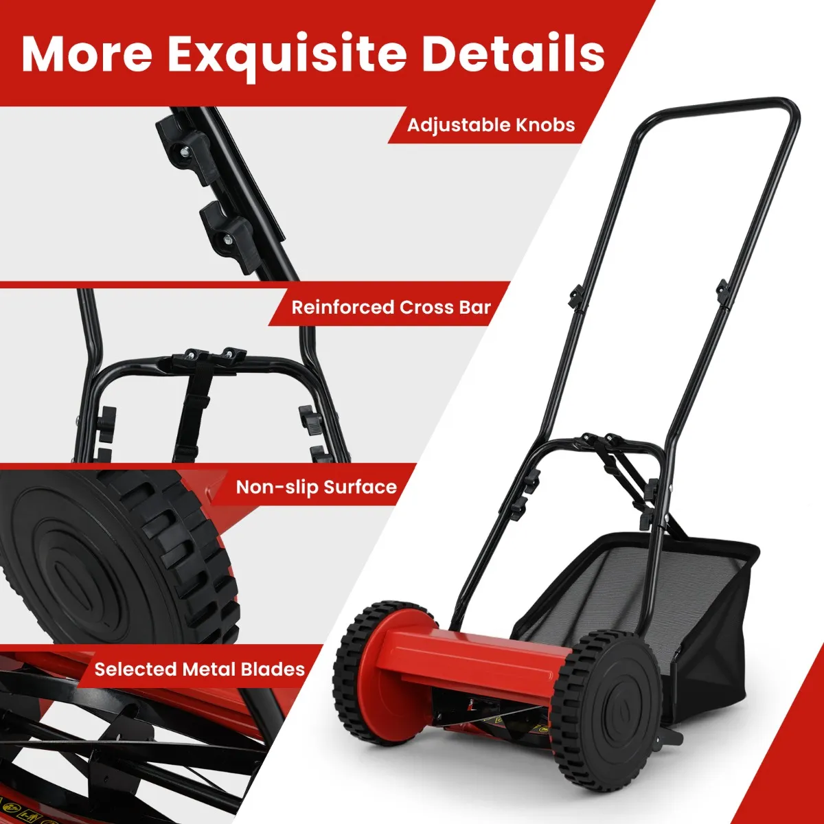 [Instelbare maaihoogte]: Met deze handmatige kooimaaier kun je de graslengte naar wens en de specifieke eisen van je gazon aanpassen. De maaihoogtes variëren van 15 mm tot 40 mm en bieden flexibiliteit om de gewenste graslengte te bereiken.