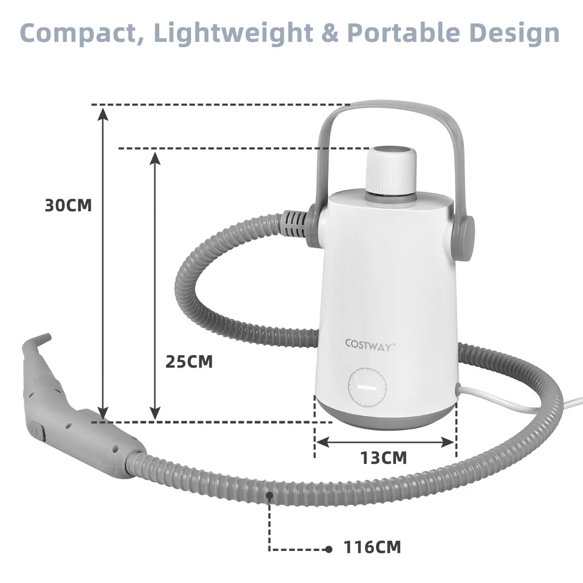 Onze krachtige stoomreiniger van 1000 W produceert continu hete stoom (95 °C) om vlekken beter van verschillende oppervlakken te verwijderen. Met een grote watertank van 300 ml kan het lange tijd worden gebruikt (12 minuten continue stoom) zonder frequente waterverversingen (verwarm het 2,5-3 minuten voor gebruik). Verlengde slang (1 m) en lang snoer (3 m) maken het gemakkelijk om elke hoek schoon te maken. Bovendien wordt hij geleverd met 10 opzetstukken, waardoor hij geschikt is voor het reinigen van spiegels, kleding, hardnekkige vlekken, toonbanken, banden en toiletten. Fris je huis op met deze veelzijdige stoomreiniger!
