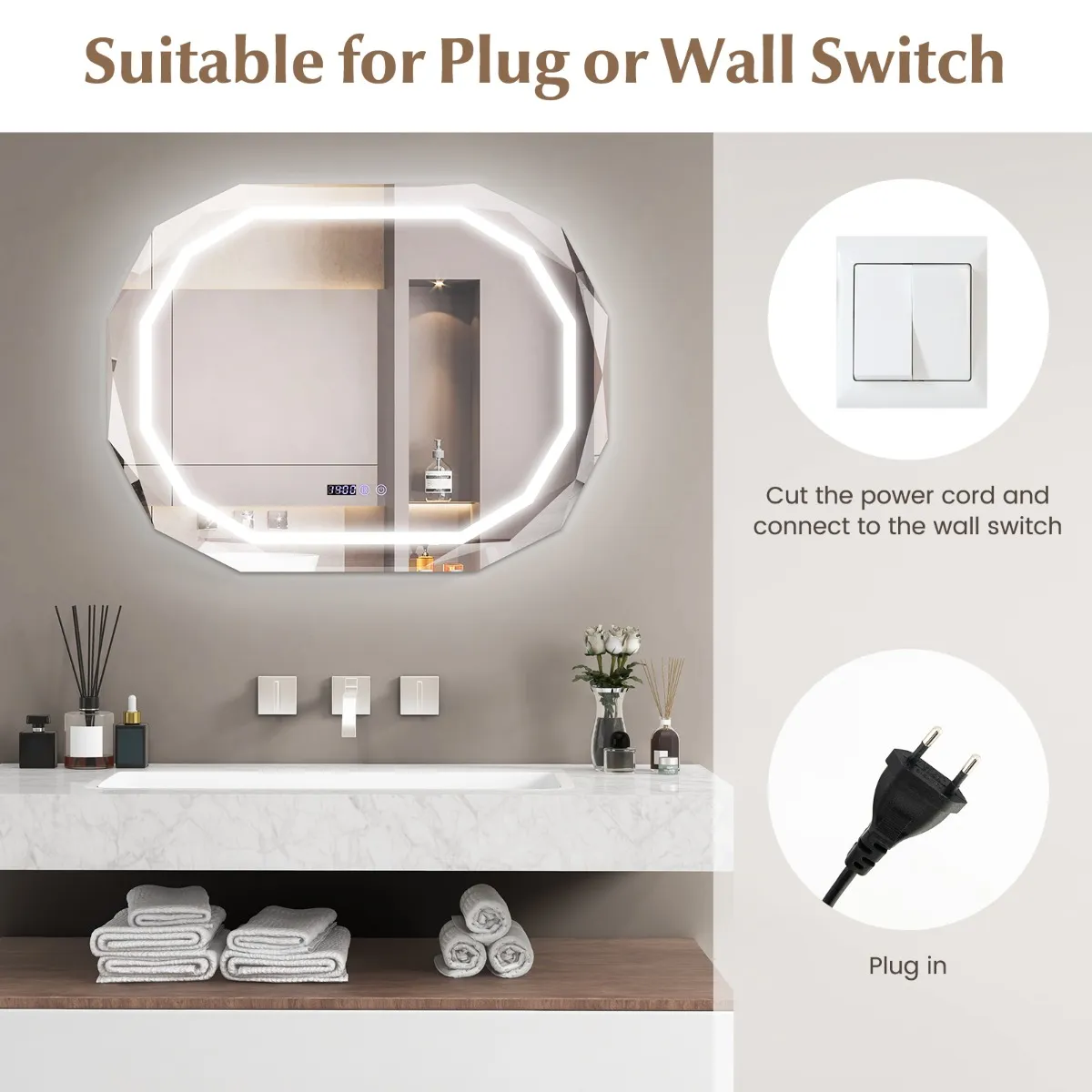 Veilige installatie en hoogwaardige details: Deze badkamerspiegel is ontworpen voor eenvoudige installatie en wordt geleverd met uitbreidingsschroeven voor een veilige bevestiging aan de muur. Bovendien kun je de digitale tijd en temperatuur op het oppervlak van de spiegel aflezen.