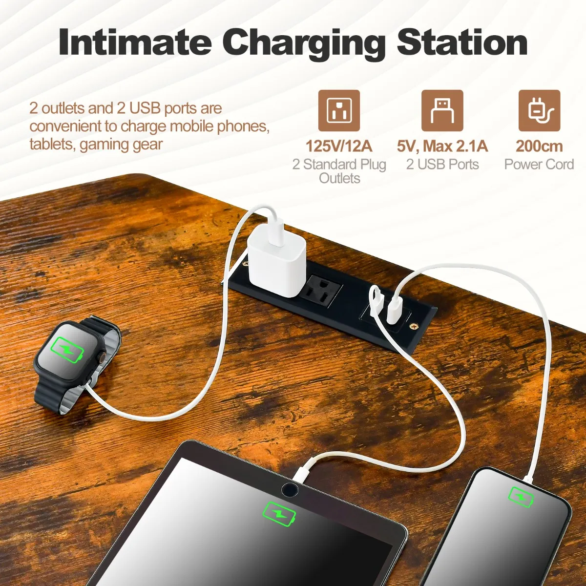 Of je nu een plek nodig hebt om te studeren, te spelen of gewoon een belangrijke klus af te maken, dit hoekbureau voldoet aan al je behoeften. Het brede blad biedt ook voldoende opbergruimte voor je kantoorbenodigdheden. De 2 stopcontacten en 2 USB-poorten zijn handig voor het opladen van mobiele telefoons, tablets en game-apparatuur. De standaard biedt veel gemak voor het verplaatsen van je CPU. Dankzij de stevige constructie biedt hij betrouwbare ondersteuning en uitstekende stabiliteit. Het schuine ontwerp helpt je het probleem van multitasking op te lossen.