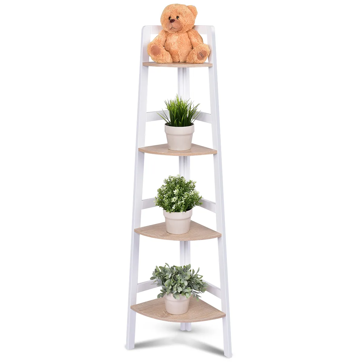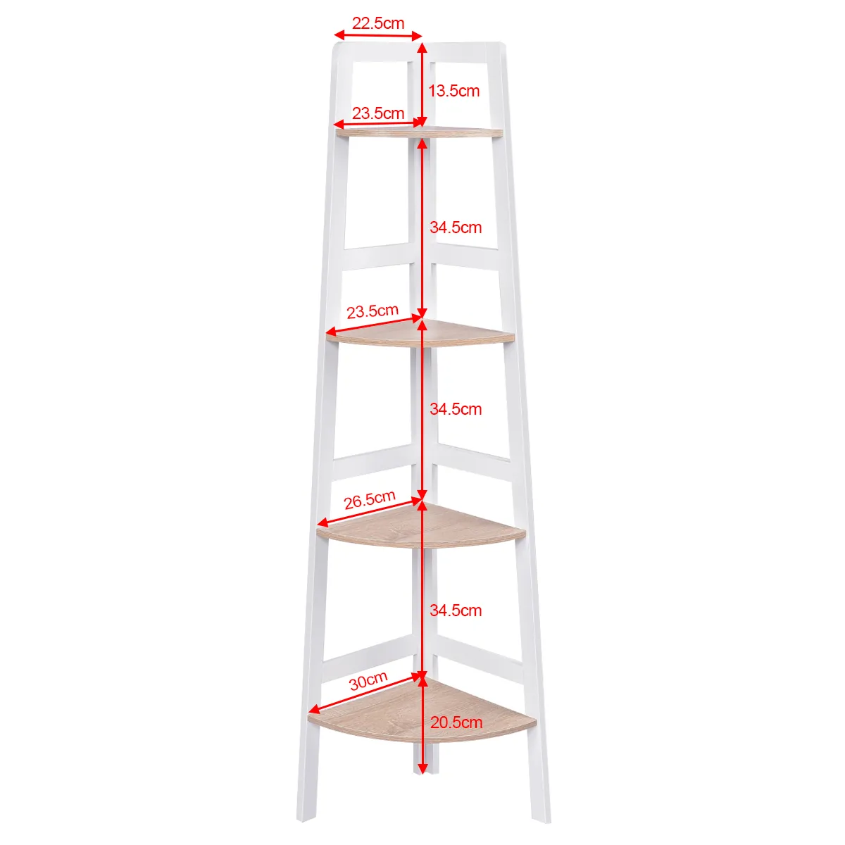 【Modern ontwerp】Deze hoekstand met eenvoudige en moderne uitstraling heeft 4 laags planken. Door het uitgekiende hoekontwerp kunt u de stand eenvoudig in de hoek van uw woonkamer, badkamer, slaapkamer, kleedkamer of gang plaatsen.