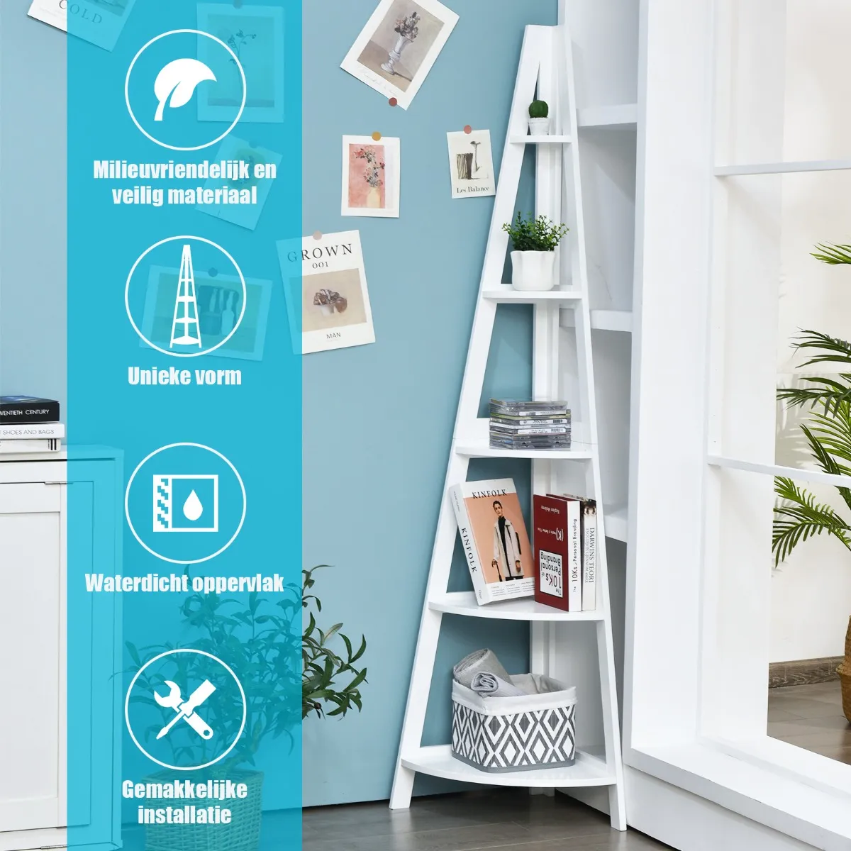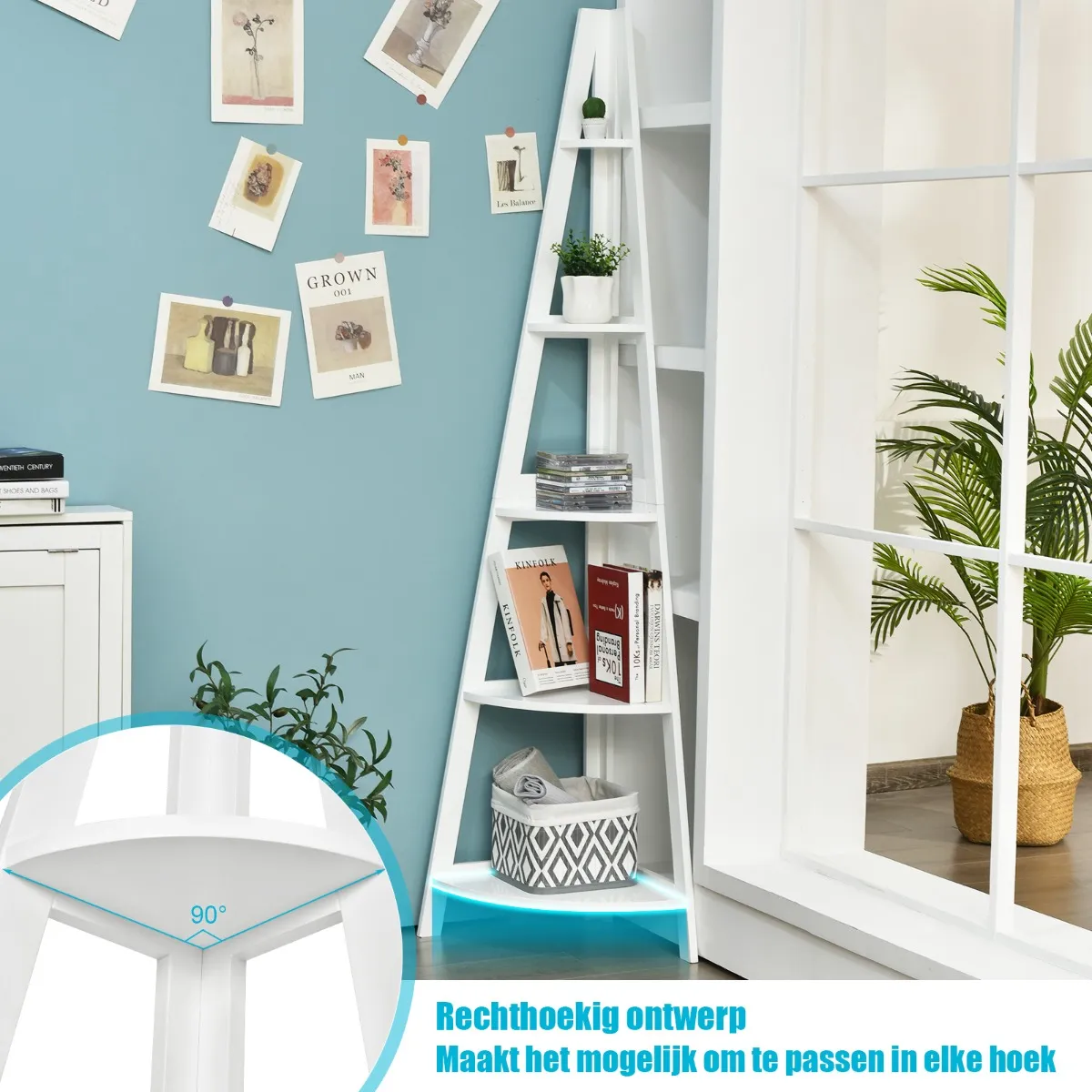 160 Cm Hoekplank Met 5 Niveaus Boekenkast Staand Rek Met Metalen Frame Opbergrek Voor Woonkamer Badkamer Keuken Hal