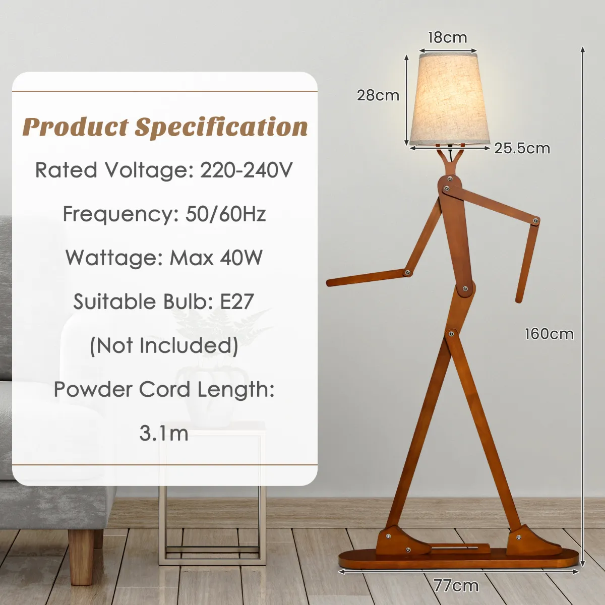 Gebruik je verbeelding om deze vloerlamp vorm te geven! De scharnieren en voet van deze humanoïde vloerlamp zijn verstelbaar, zodat je hem naar je persoonlijke voorkeur kunt instellen. Deze lamp is gemaakt van natuurlijk rubberhout, past bij de meeste inrichtingsstijlen en voegt charme toe aan elke ruimte. De stoffen kap straalt een zacht licht uit en helpt een warme sfeer te creëren. Deze vloerlamp wordt bediend met een voetschakelaar. En de lamp vereist een E27 gloeilamp (niet inbegrepen).