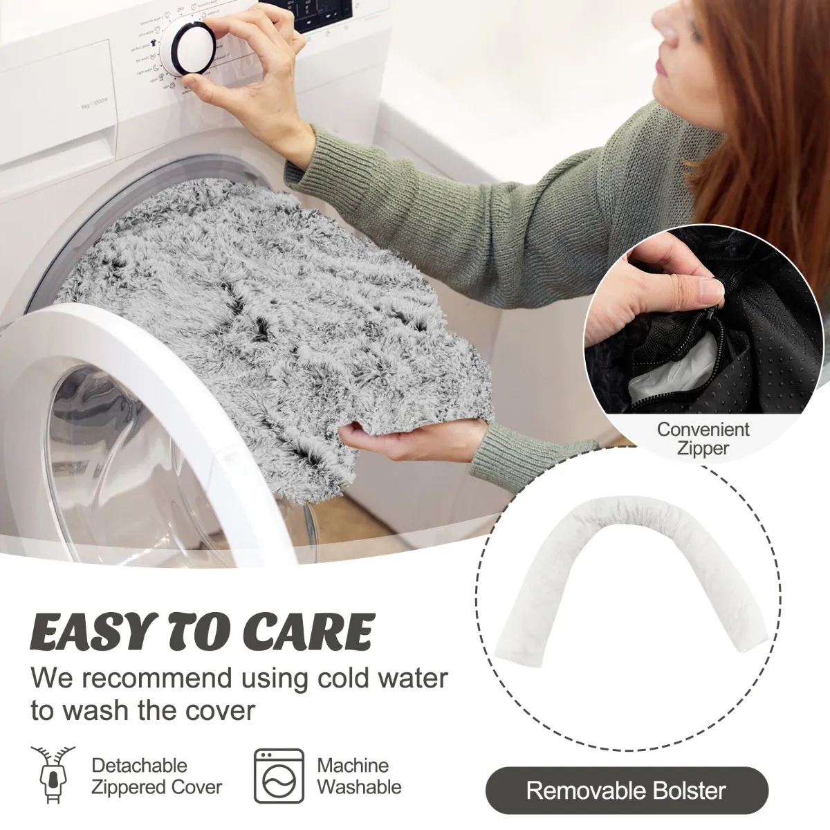 Zachte en knusse touch: De kalmerende sofa voor honden is gemaakt van ultrazachte katoenen vulling en huidvriendelijke en knuffelige lange pluche stof en biedt uw hond een rustige en vredige ruimte om te ontspannen. Hij wordt ook geleverd met een comfortabel, gewatteerd kussen voor extra ondersteuning van nek en hoofd.