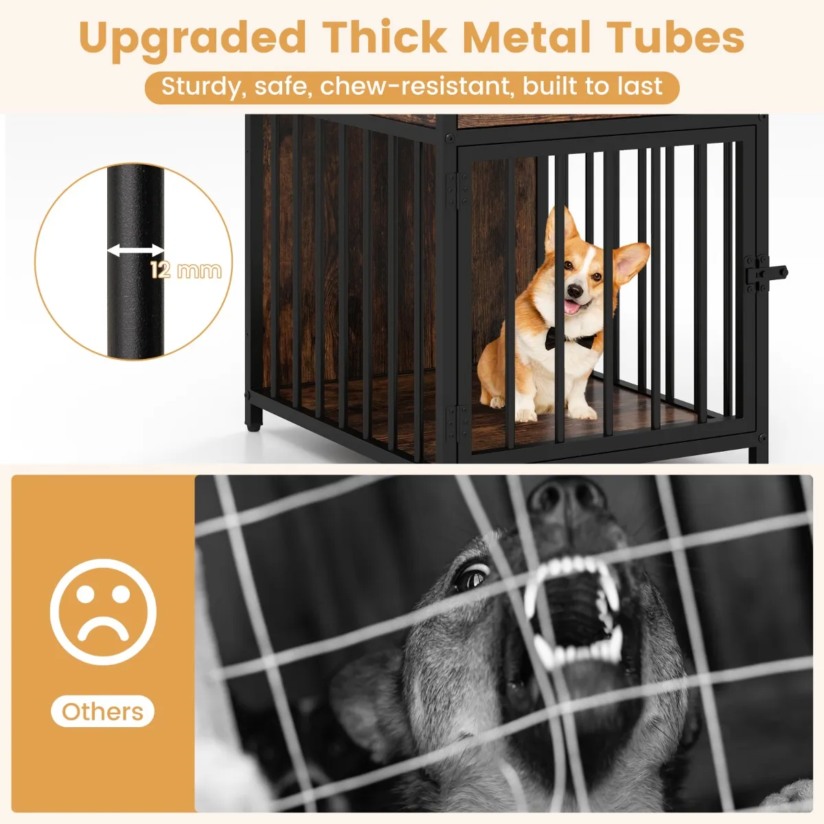 【Veelzijdig, deelbaar meubilair】: Dit hondenmeubilair is niet alleen een ideale hondenkrat, maar dient ook als praktisch bijzettafeltje, haltafel of elegant nachtkastje. Bovendien creëert de perfecte mix van metaal en hout een moderne, elegante look voor uw interieur.