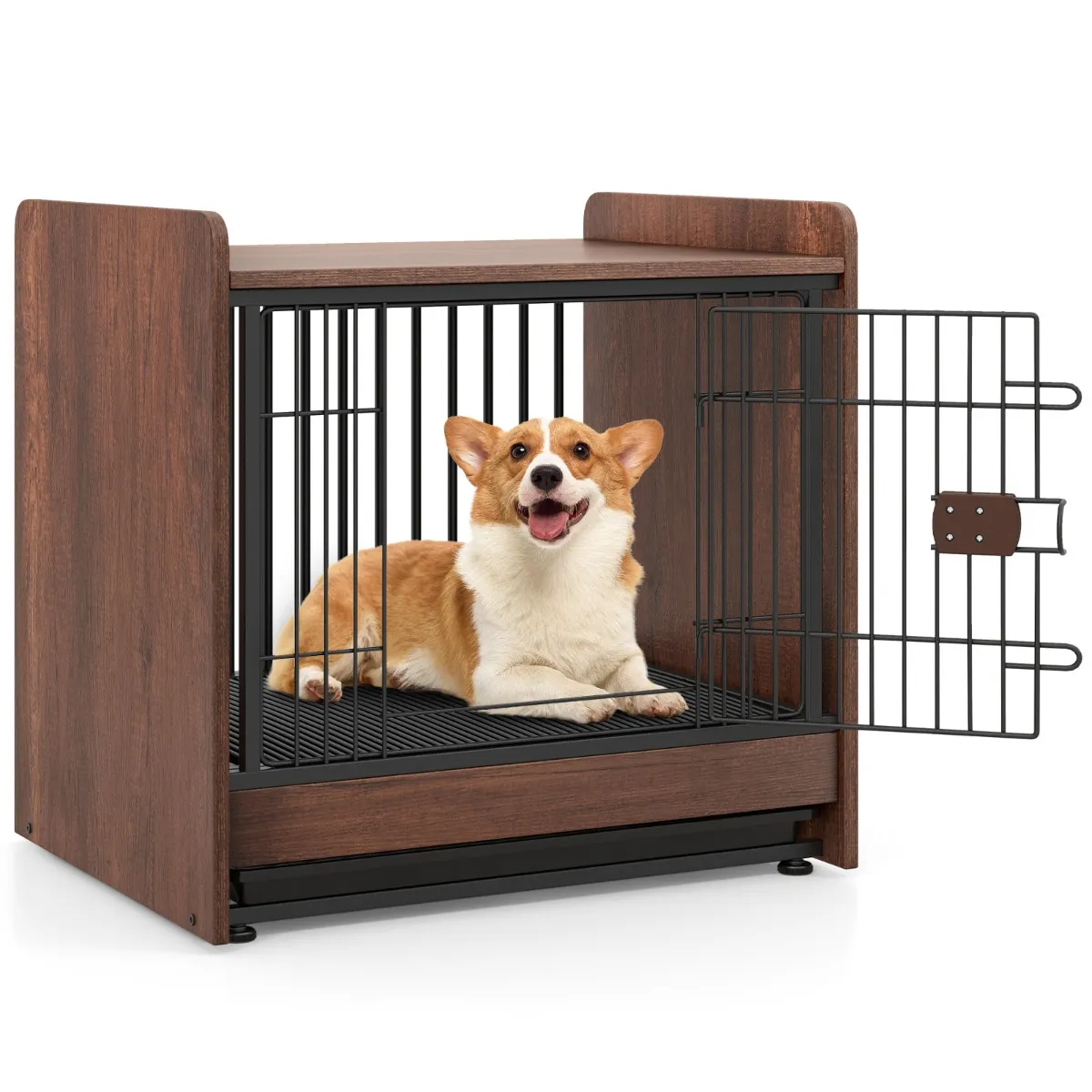 De 2-in-1 hondenkrat in rustiek bruine afwerking past moeiteloos in de stijl van je kamer. Hij kan ook worden gebruikt als bijzettafel om je decoratie te verfraaien. Met een uitneembare lade om het schoonmaken te vereenvoudigen, kunnen ze op een schone plek liggen. Het metalen deurtje met klink voorkomt dat je hond eruit kan en de achterwand is verstevigd met 1 cm dikke metalen buizen, wat zorgt voor een stevige constructie die bestand is tegen slijtage. Hij is uitgerust met verstelbare voetsteunen, beschermt je vloer en past zich aan oneffen oppervlakken aan.