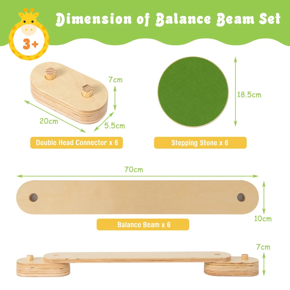 - Afmeting van elke evenwichtsbalk: 70 x 10 x 1.8 cm (L x B x H)