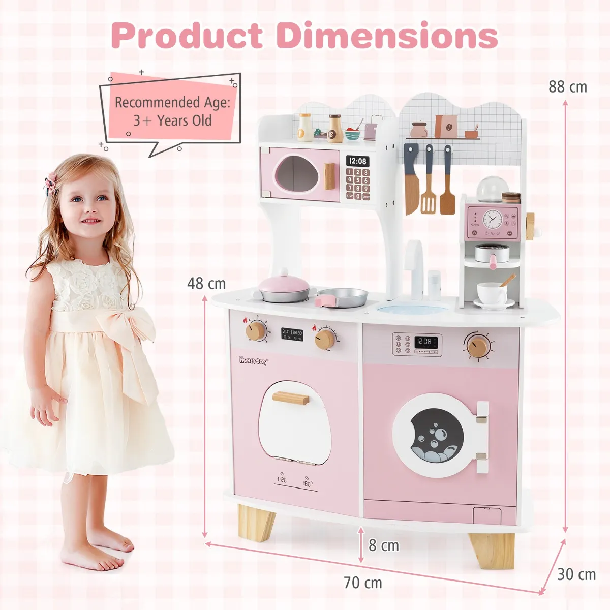 Schattig achterpaneel maakt de speelgoedkeuken aantrekkelijk
