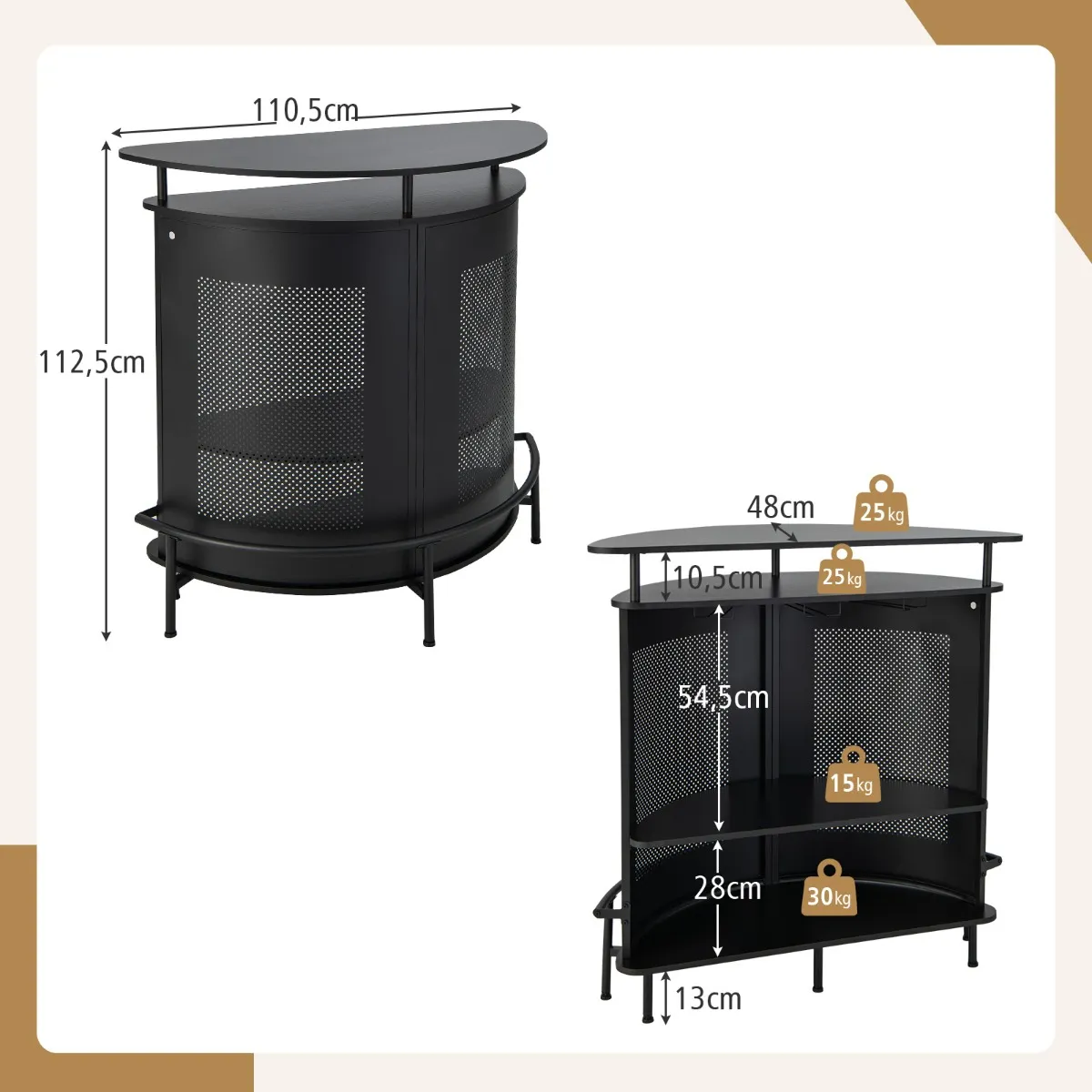 - Totale afmetingen: 110,5 x 48 x 112,5 cm (L x B x H)