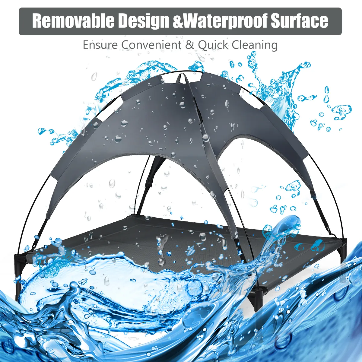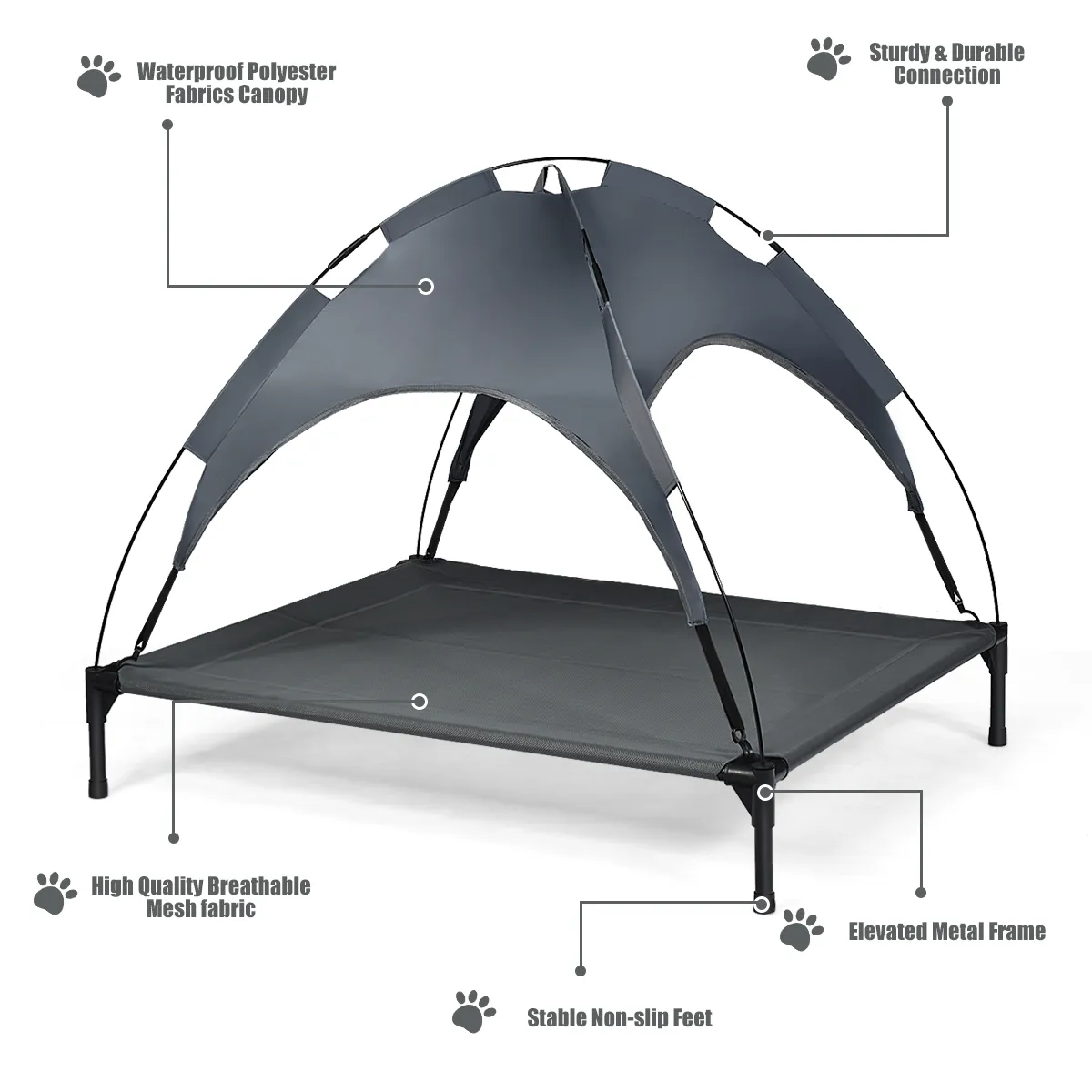 Zonwering en waterdichte luifels: Dit huisdierbed heeft een afneembare luifel die uw huisdier in de zomer van koele schaduw voorziet. Het beschermt ook actief tegen zonlicht en regen, waardoor dit bed zeer geschikt is voor gebruik binnen of buiten.