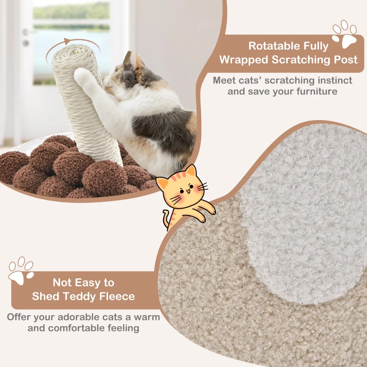 Duurzame krabpaal: De kattenkrabpaal heeft een volledig opgerolde en draaibare krabpaal die een ideale plek biedt voor katten om hun klauwen te scherpen, waardoor het krabinstinct van katten wordt bevredigd en je meubels worden beschermd. Ondertussen is de rietvormige paal aantrekkelijk en zorgt voor vrije beweging.