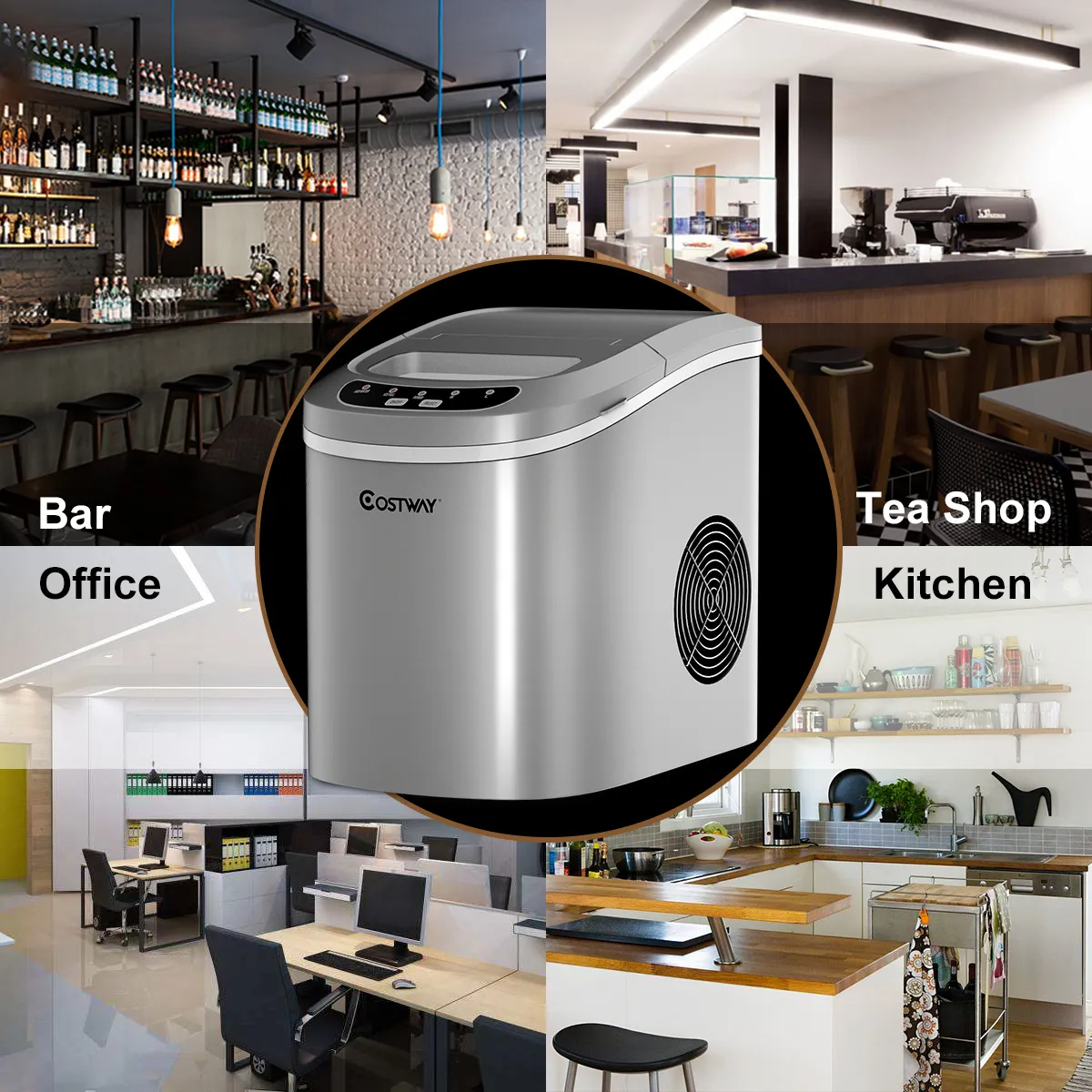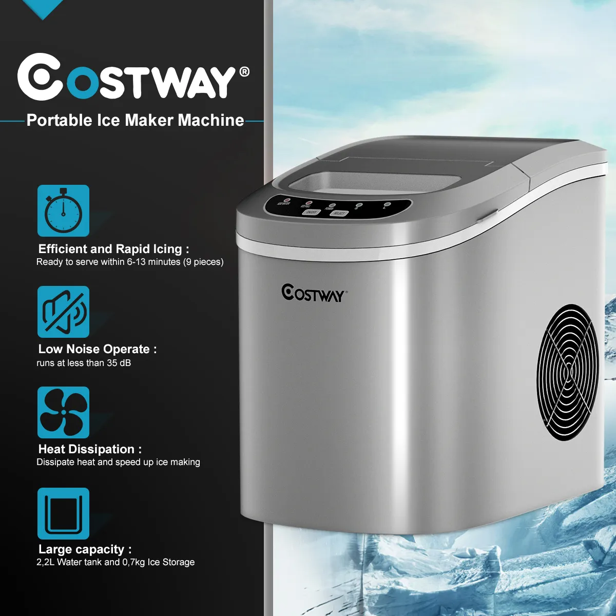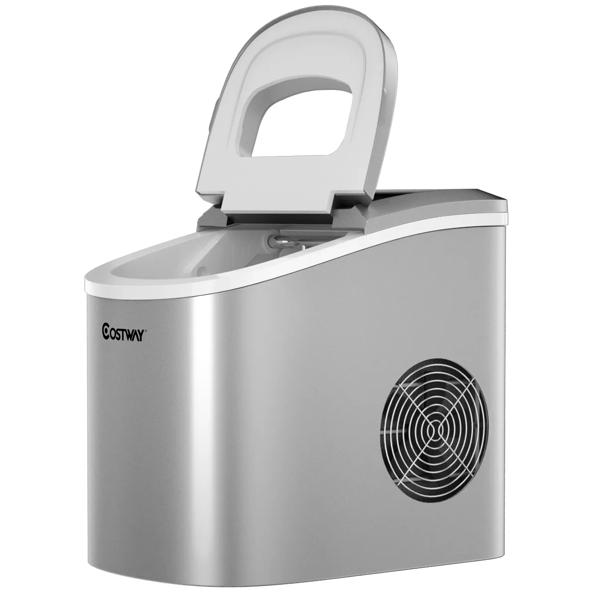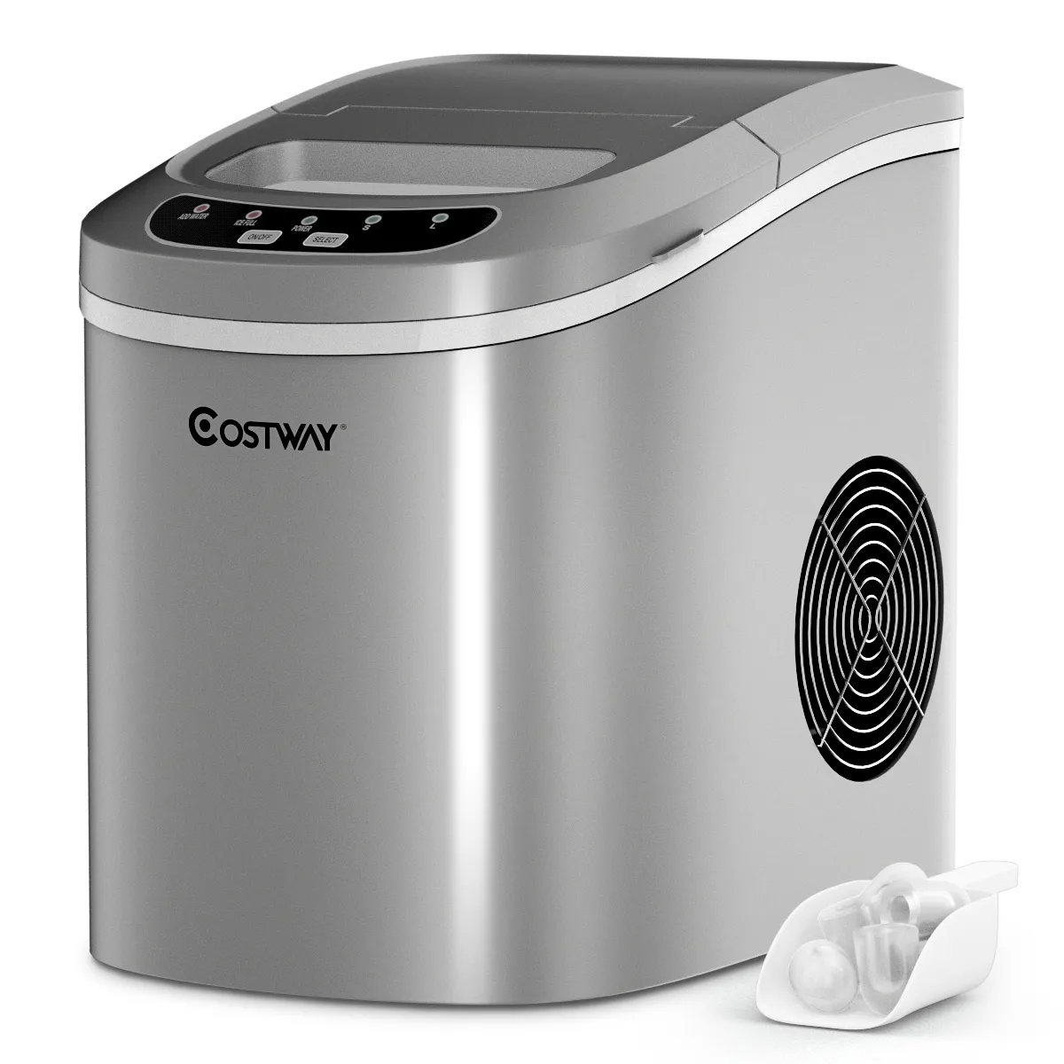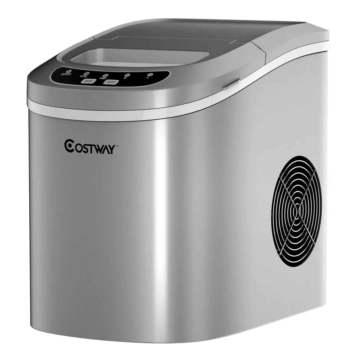 Met zijn hoge efficiëntie, onze ijsmaker machine kunt u genieten van vers ijs blokjes op elk gewenst moment. Elke 6-13 minuten produceert onze ijsmaker 9 ijsblokjes met een gewicht van 7-9g elk. De ijsmaker kan binnen 24 uur ongeveer 12 kg ijsblokjes produceren. Het waterreservoir kan gevuld worden met maximaal 2,2 liter water. Bovendien kunt u de grootte van het ijsblokje naar wens kiezen tussen S en L. De behuizing heeft een transparant venster aan de bovenkant, zodat u het productieproces kunt observeren. De ijsblokjes machine verbruikt weinig elektriciteit en is stil. Dankzij het compacte formaat kunt u de ijsblokjes machine gemakkelijk overal mee naartoe nemen.