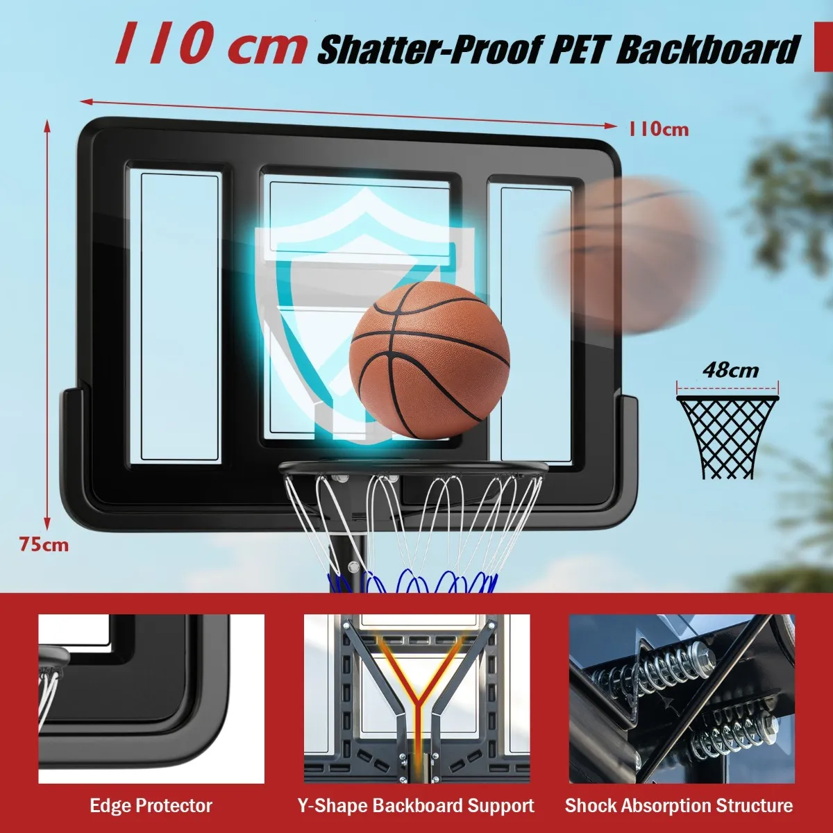Uitstekend basketbalring: met een basketbalring van 48 cm en een standaard steunpaal van 3 meter biedt deze basketbalring de ultieme sportervaring. Of je nu een beginner of een professionele basketbalspeler bent, dit uitstekende basketbalstandaard is perfect voor alle niveaus.
