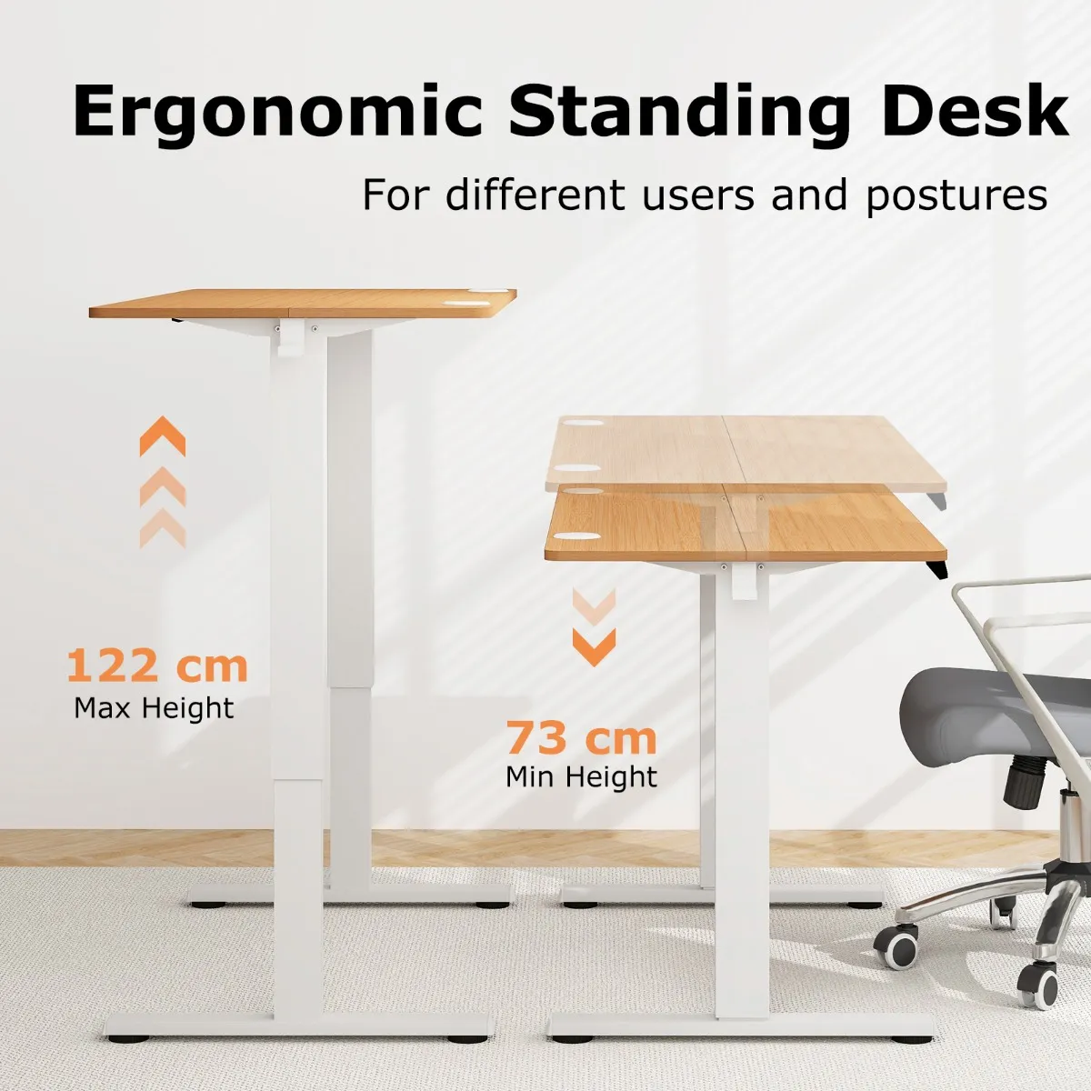Transformeer je werkplek met ons ultieme ergonomische meesterwerk! Wissel heel gemakkelijk en snel tussen een hoogte van 73 cm tot een maximale hoogte van 122 cm voor een wellness-oase direct bij de hand. Het elegante led-display en de gepersonaliseerde geheugeninstellingen zorgen voor comfort. Stel je een werkplek voor waar sereniteit veiligheid ontmoet, want botsingsbescherming en kinderbeveiliging combineren veiligheid met gemoedsrust. Laat organisatorische magie los met slimme haken en kabelmanagement en elimineer op deze manier de ontstane rommel. Upgrade nu op deze oase van gezondheid en harmonie – het is meer dan een bureau, het is je revolutie in het dagelijkse werk