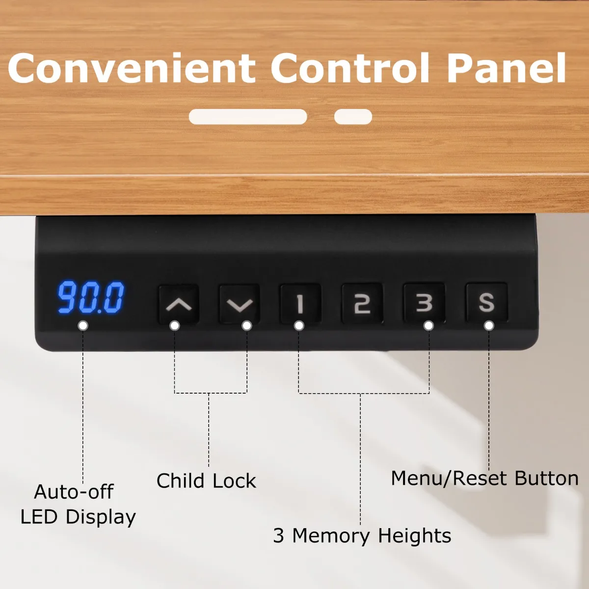 【Intelligent bedieningspaneel】: Verhoog de efficiëntie van je werkplek met het intelligente bedieningspaneel. Er is een led-display voor eenvoudige hoogteweergave, 3 geheugeninstellingen voor het opslaan van je favoriete posities en een menu-/resetknop die ervoor zorgt dat de verstelbare tafel zich probleemloos aan je favoriete instellingen aanpast.
