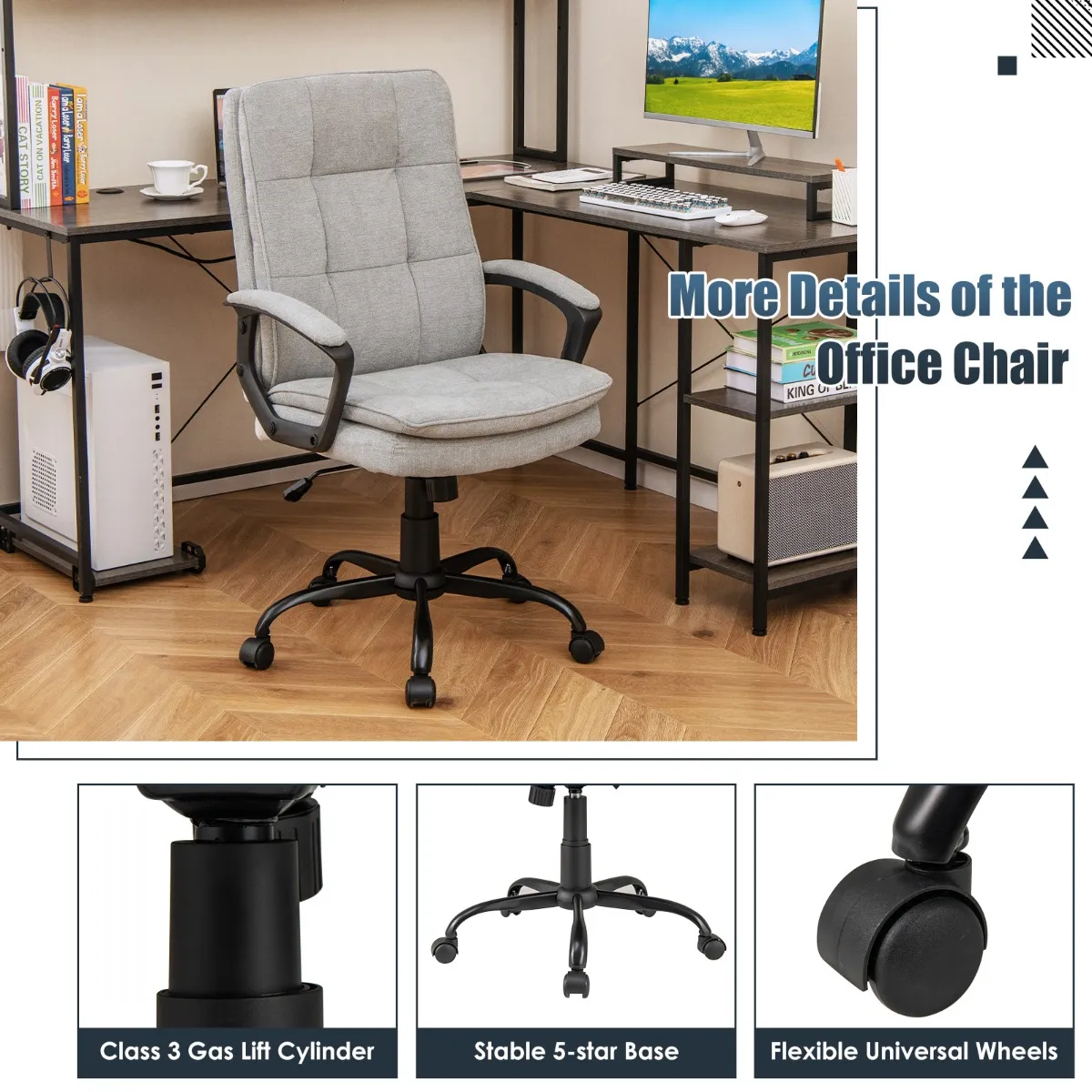 【Betrouwbare structuur】: Het frame van deze stoel is gemaakt van stevig metaal voor langdurig, betrouwbaar gebruik. De hoogwaardige gasveer zorgt voor de veiligheid en duurzaamheid van het verstelsysteem. Bovendien maakt het brede 5-sterren onderstel de stoel stabieler.