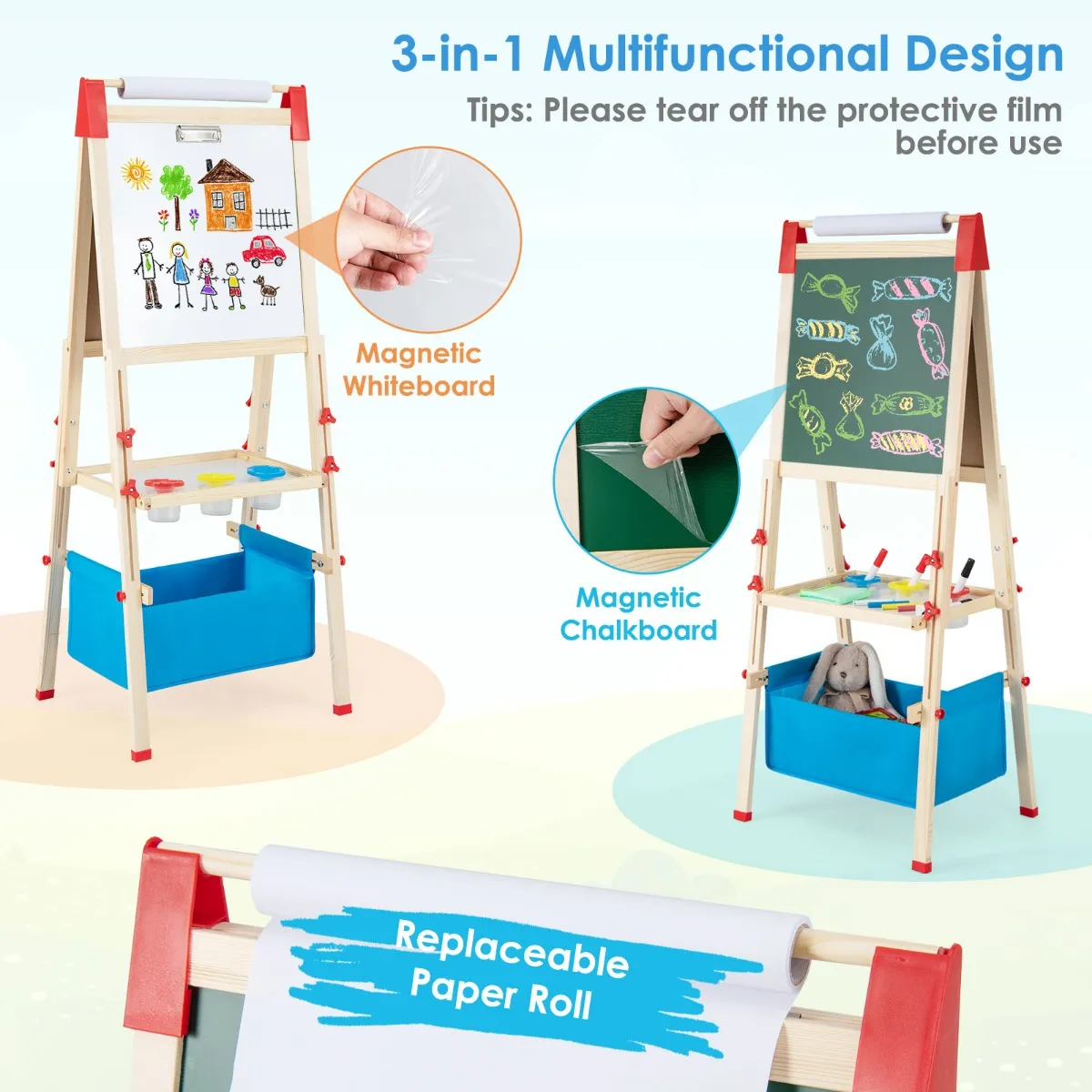 3 in 1 houten kinderezel: Onze kinderkunst ezel bevat 1 schoolbord en 1 magnetisch whiteboard waarop kinderen kunnen tekenen en creëren. Tips: verwijder de beschermfolie voor gebruik. Bovendien geeft de papierrol van 5 m (L) x 30 cm (B) je kleine kunstenaar meer ruimte om te schrijven of tekenen.
