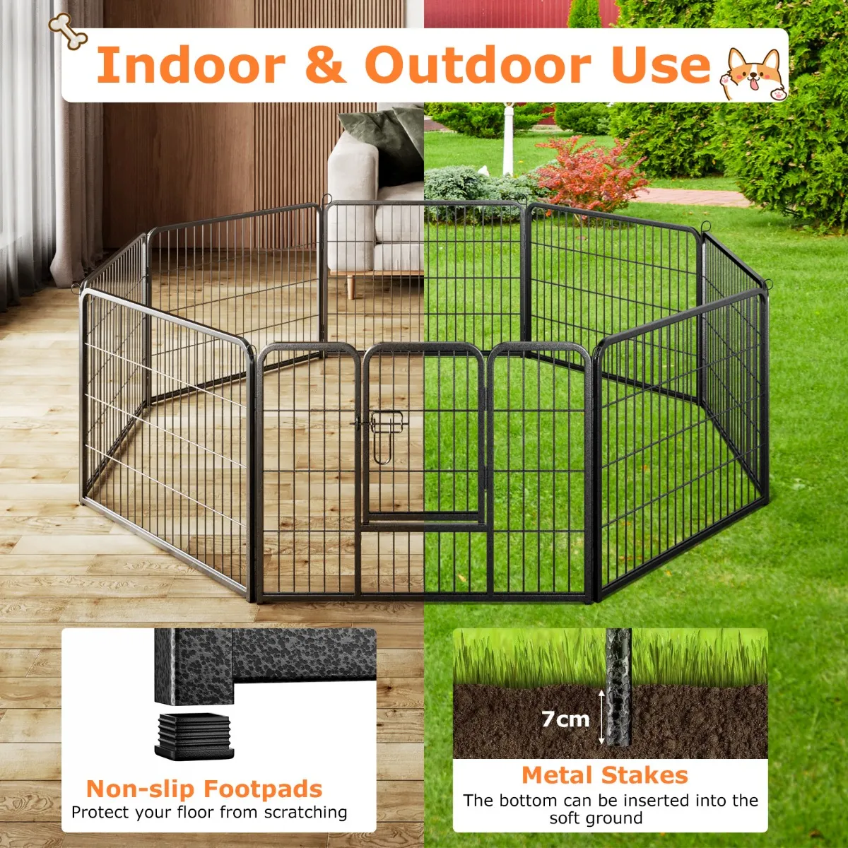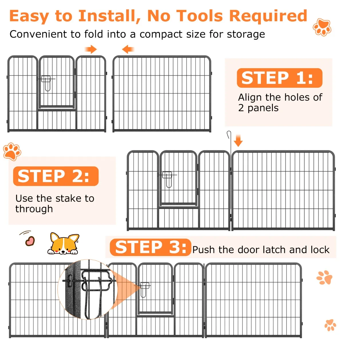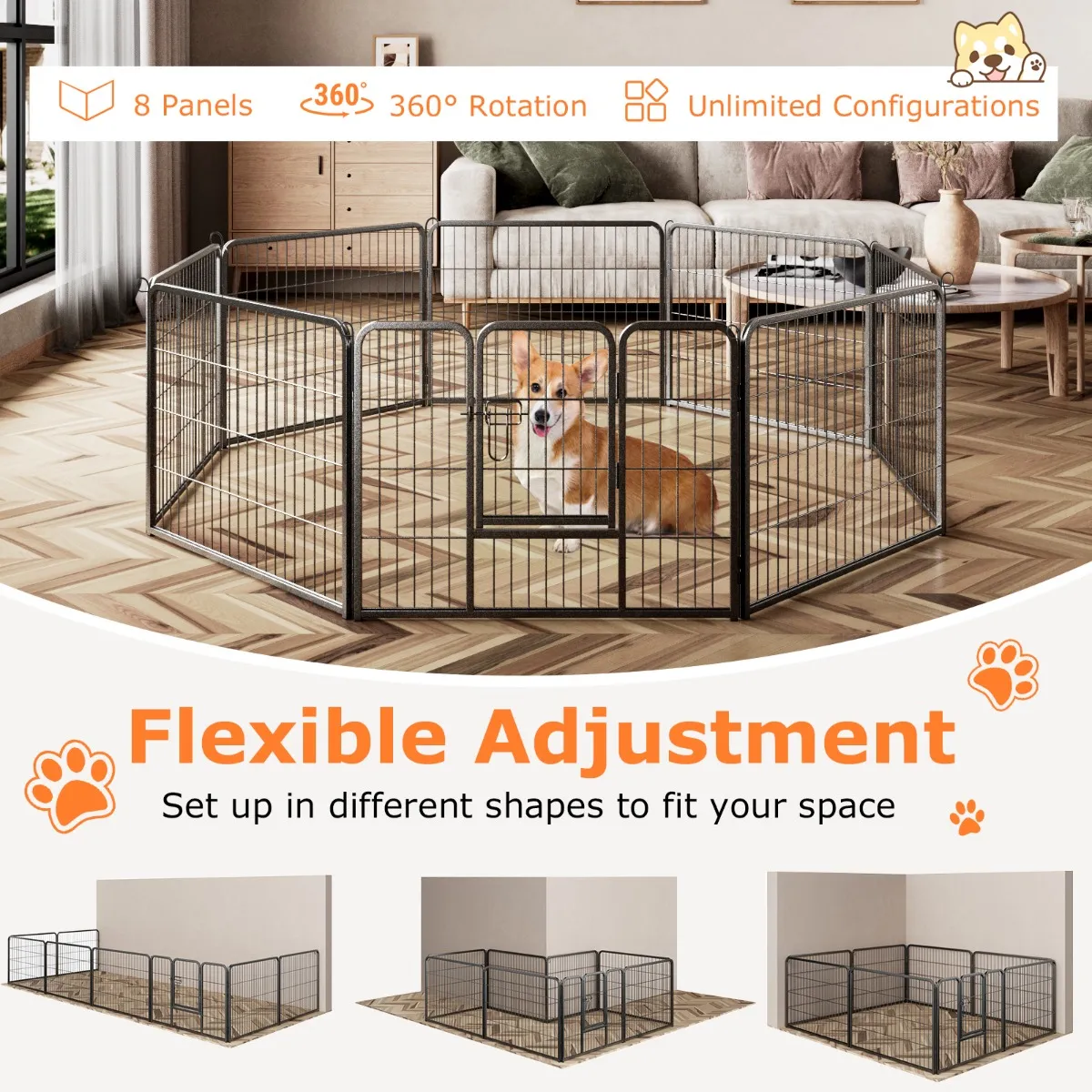 【Flexibele aanpassing】: Dit dierenhek heeft 8 360° draaibare panelen, die kunnen worden gerangschikt in achthoekige, vierkante, rechthoekige of onregelmatige vormen om in verschillende ruimtes te passen. Bovendien kunt u panelen toevoegen of verwijderen om de perfecte grootte leefruimte voor uw huisdieren te creëren.