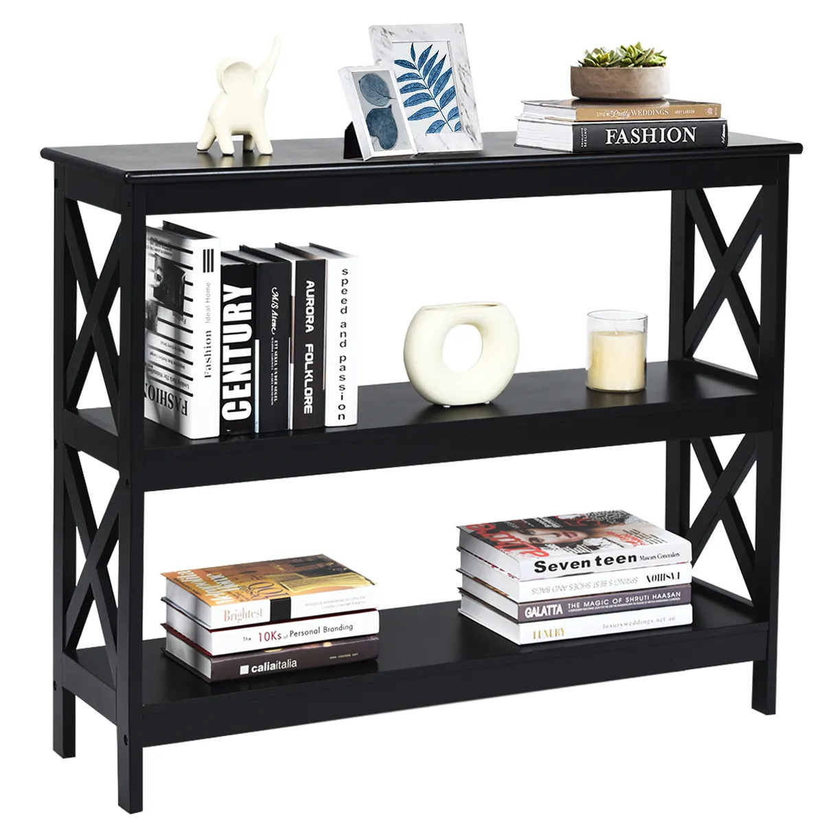 【Stevige en duurzame constructie】Onze consoletafel is gemaakt van hoogwaardig MDF om jarenlang mee te gaan. De X-vormige structuren aan beide zijden zorgen voor een stabielere ondersteuning en verhogen de esthetiek, zodat u zich geen zorgen hoeft te maken over het schudden en vervormen van de tafel.