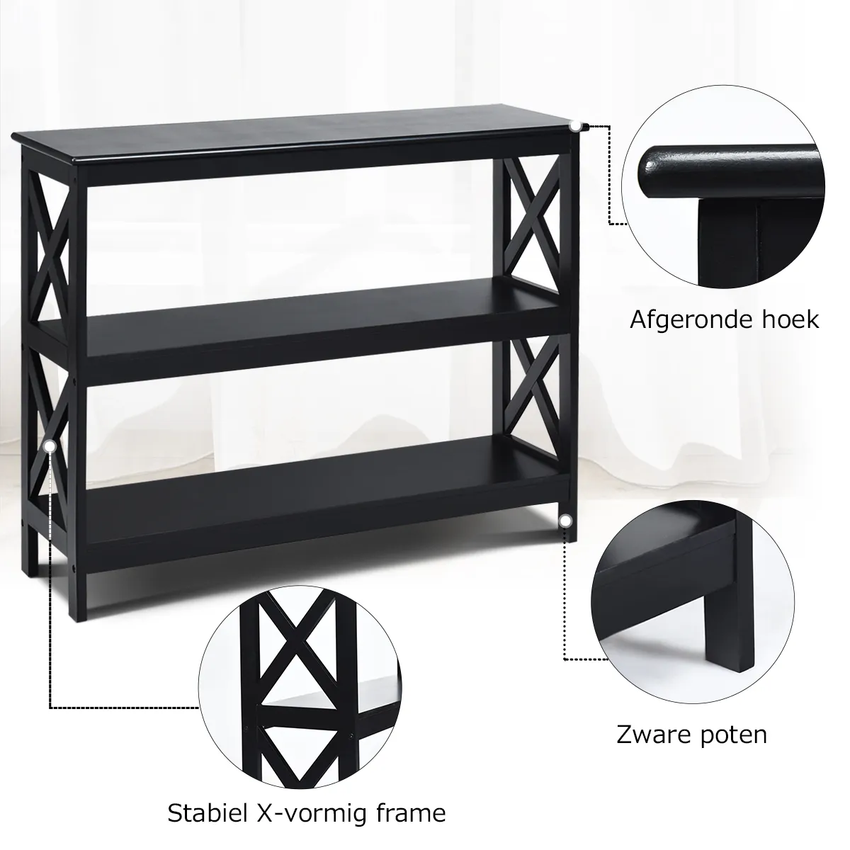 Kan worden gebruikt als bijzettafel voor op de bank, als toegangstafel, als TV-standaard, enz