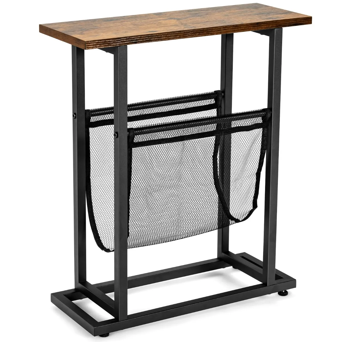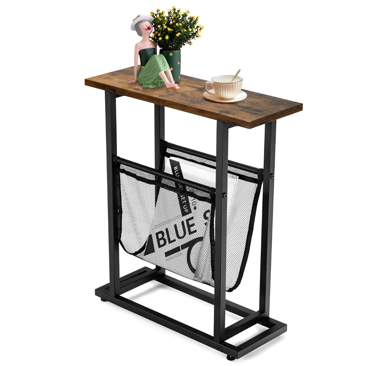 Het eerste wat u zal opvallen is de speciale gaas tijdschriftenhouder onder de tafel klaar voor u om tijdschriften, dekens, en kranten in te bewaren. Het brede tafelblad is ook een mooie plek om uw lamp, koffiekopje en andere decoraties te etaleren. Ondanks de grote opbergruimte is het een tafel die geschikt is voor kleine ruimtes. De stevige stalen voet zorgt voor duurzaamheid en stabiliteit, terwijl de anti-slip doppen het evenwichtsvermogen van de tafel vergroten. Bovendien is hij gemakkelijk te installeren en te onderhouden.