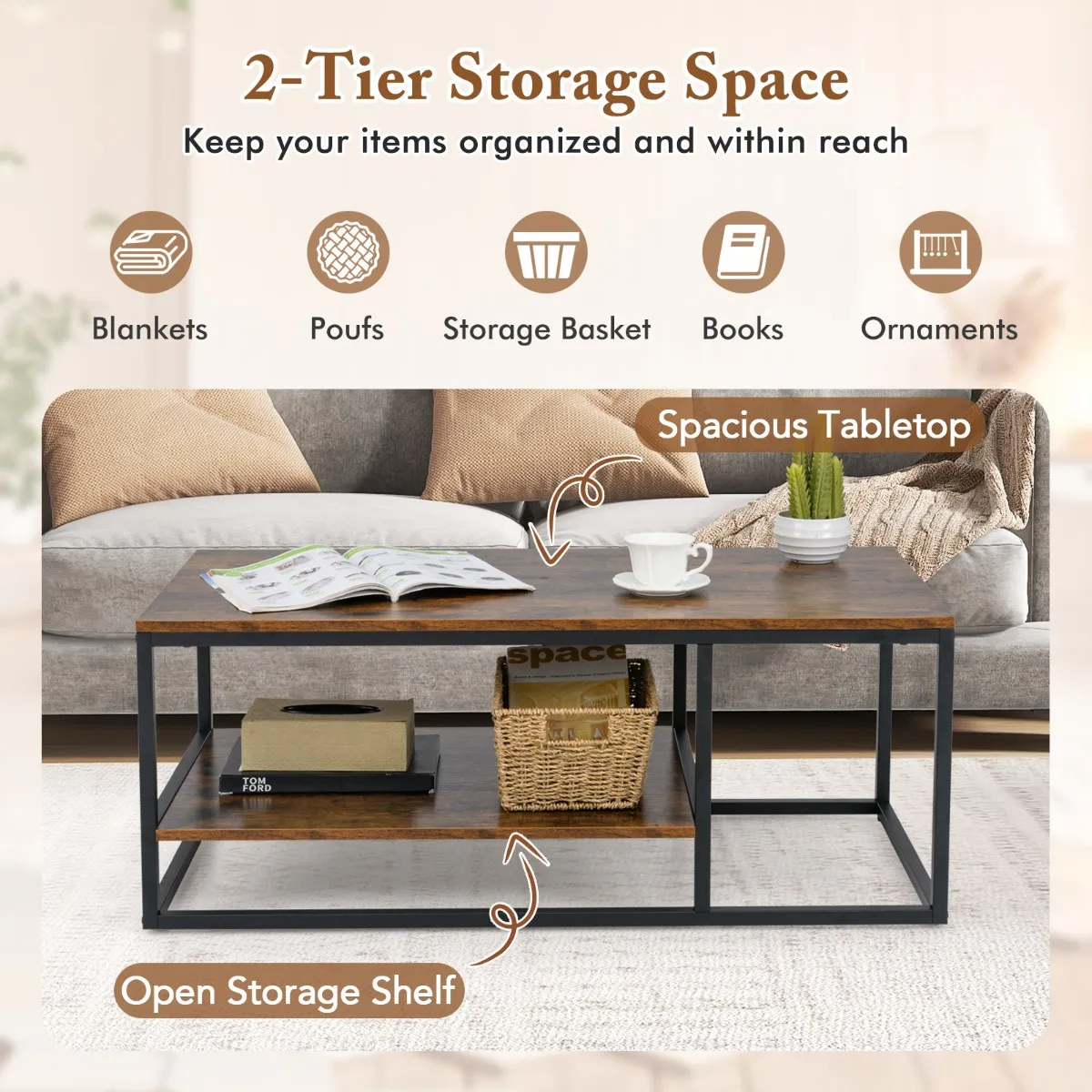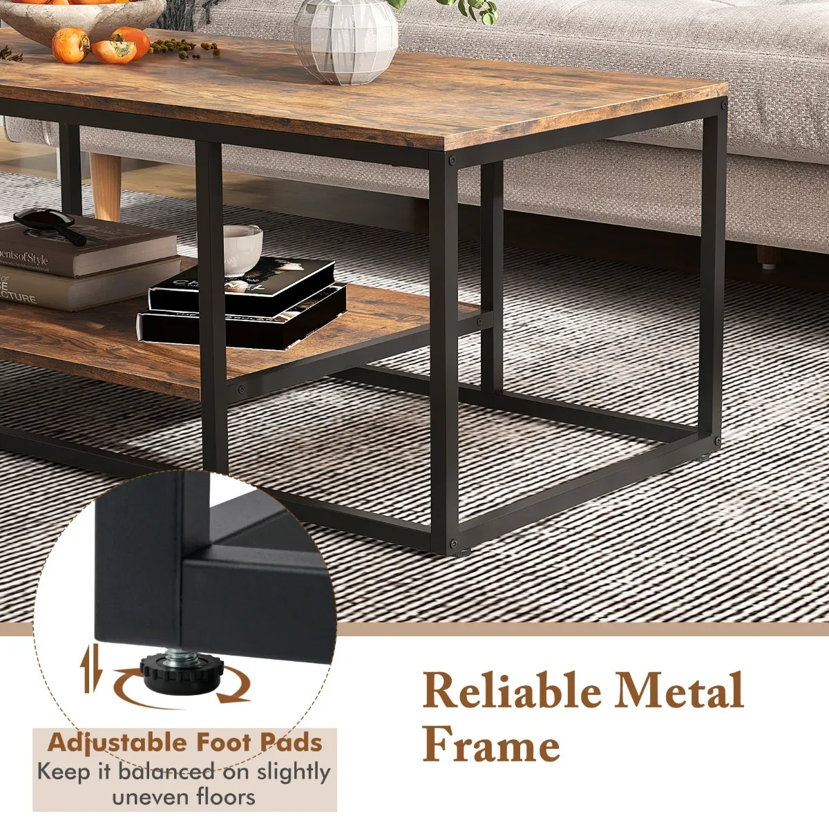 【Moderne industriële charme】: Onze salontafel heeft een rustiek bruin houtnerf oppervlak gecombineerd met een strak zwart metalen frame, waardoor een industriële look ontstaat. Het veelzijdige ontwerp past bij verschillende kamerstijlen, waardoor het een stijlvol middelpunt is voor je woonkamer of ontvangstruimte.