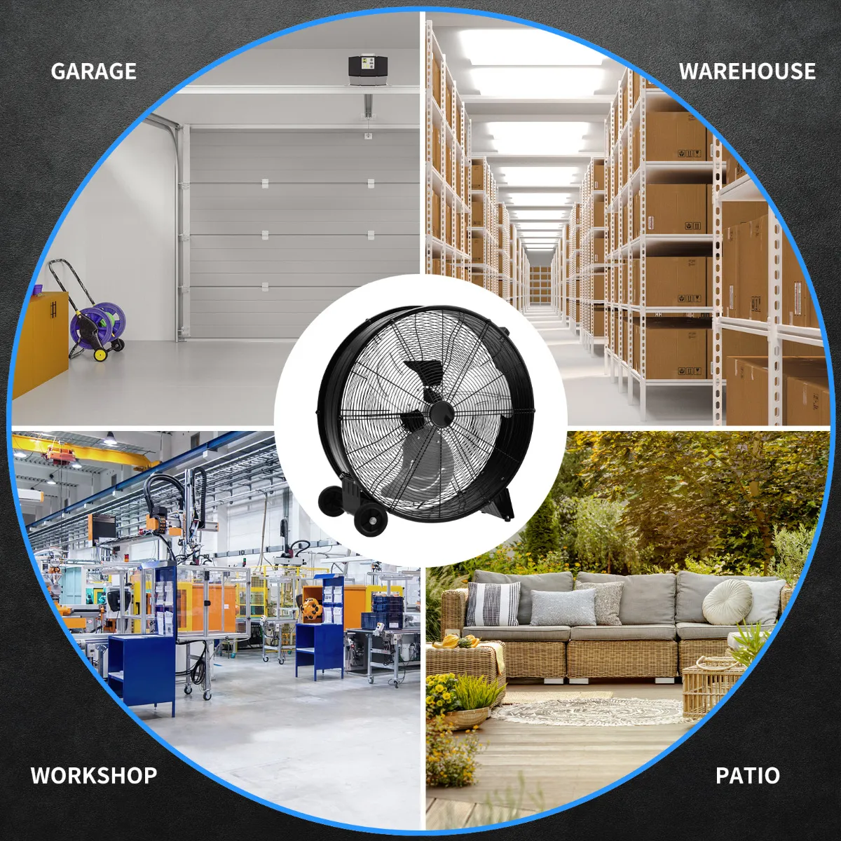 【Betere luchtkwaliteit】: De industriële trommelventilator is zeer geschikt voor magazijn, werkplaats, fabriek, kelder en patio. De sterke motor zorgt voor een gestage luchtstroom en een betere luchtcirculatie. Op deze manier worden uitlaatgassen en stof verplaatst en komt er frisse en koele lucht binnen.
