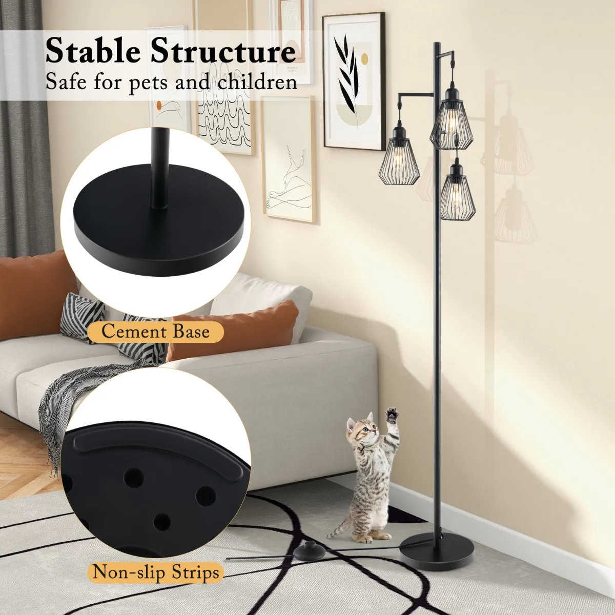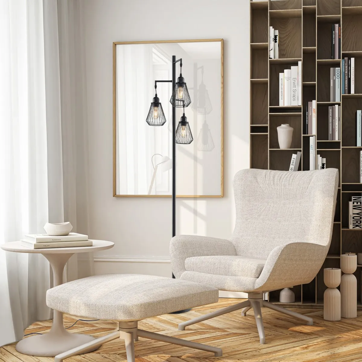 Breed toepassingsgebied: Met 3 ruitvormige lampenkappen is deze hoge boomlamp geschikt voor verschillende stijlen, zoals boerderij, industriële en retrostijl uit het midden van de eeuw, en voegt een decoratief tintje toe aan verschillende ruimtes, zoals woonkamers, slaapkamers, studieruimtes en entreeruimtes.