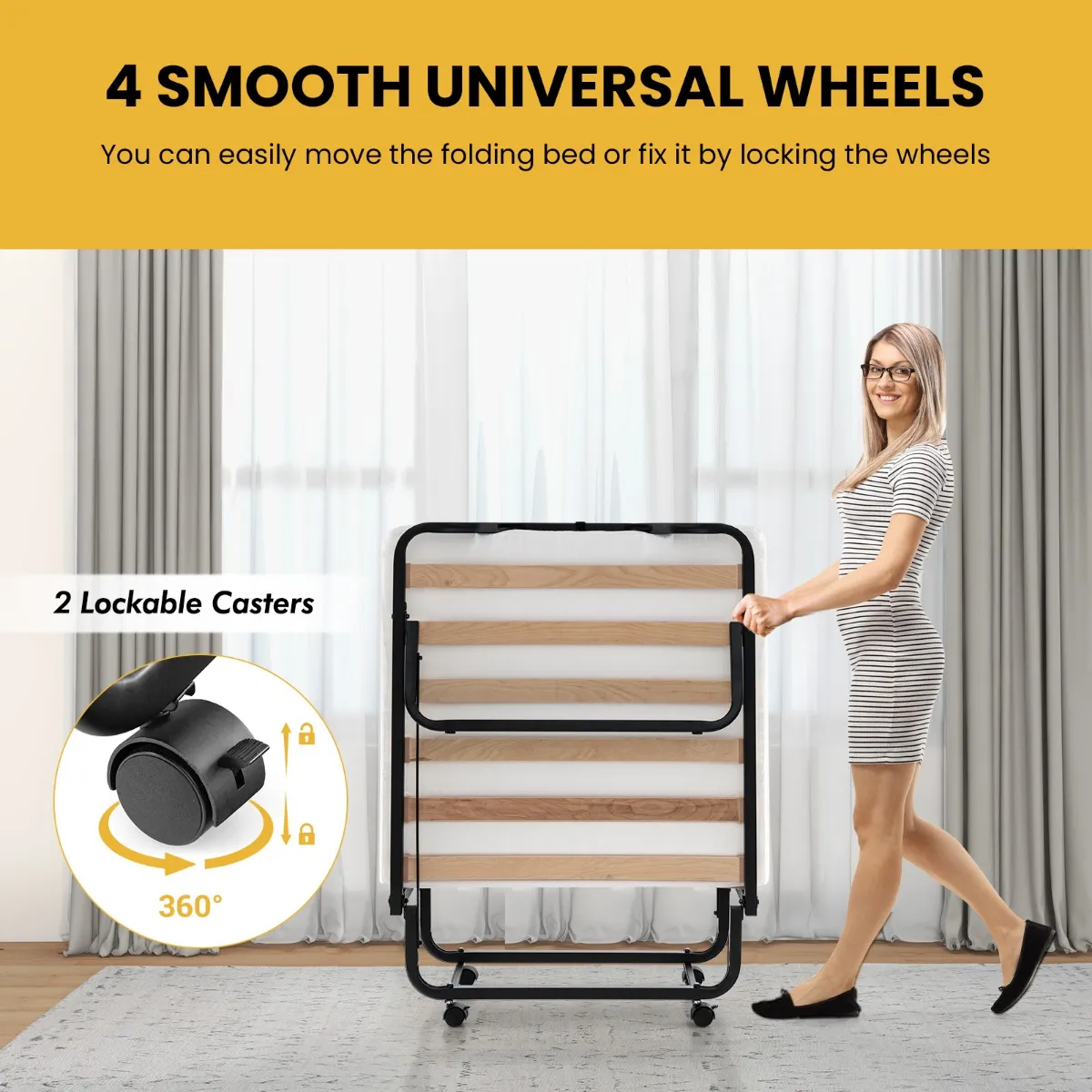 【Stille en duurzame PP-wielen】 Het inklapbare bed heeft 4 PP-wielen, inclusief 2 vergrendelbare wielen en 2 universele wielen. Alle produceren minimale geluiden en laten geen krassen achter op de vloer. Vouw het logeerbed gewoon van tevoren samen, dan kun je het gemakkelijk thuis schuiven.