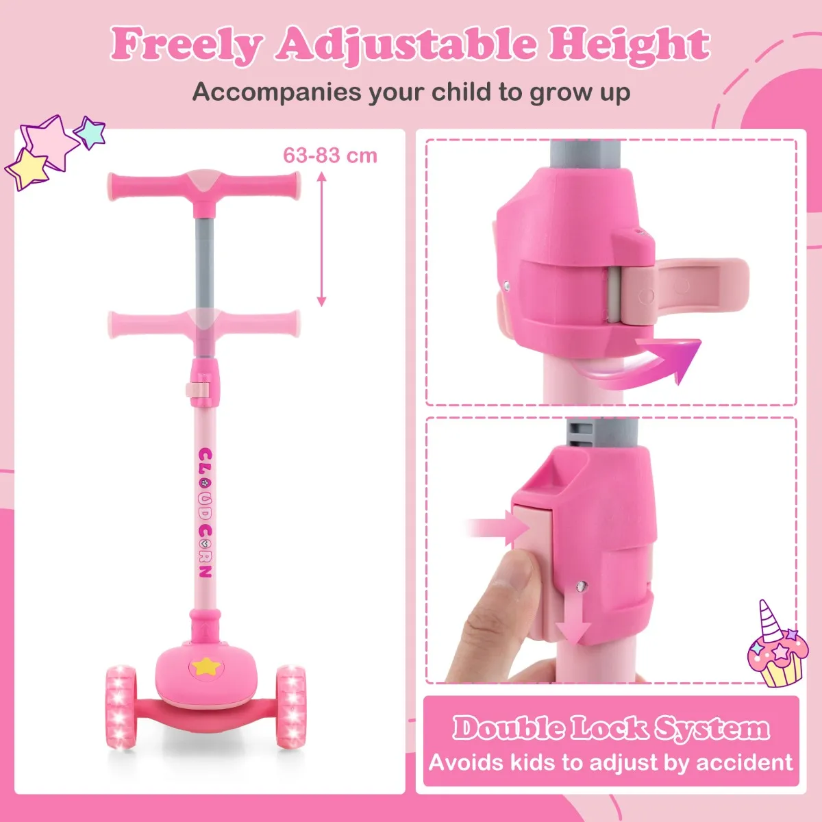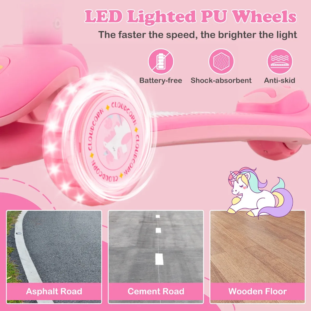 Inklapbare Kinderstep Met PU-Led-Wielen En Achterrem In Hoogte Verstelbaar Kinderscooter Voor Jongens En Meisjes Vanaf 3 Jaar-Roze