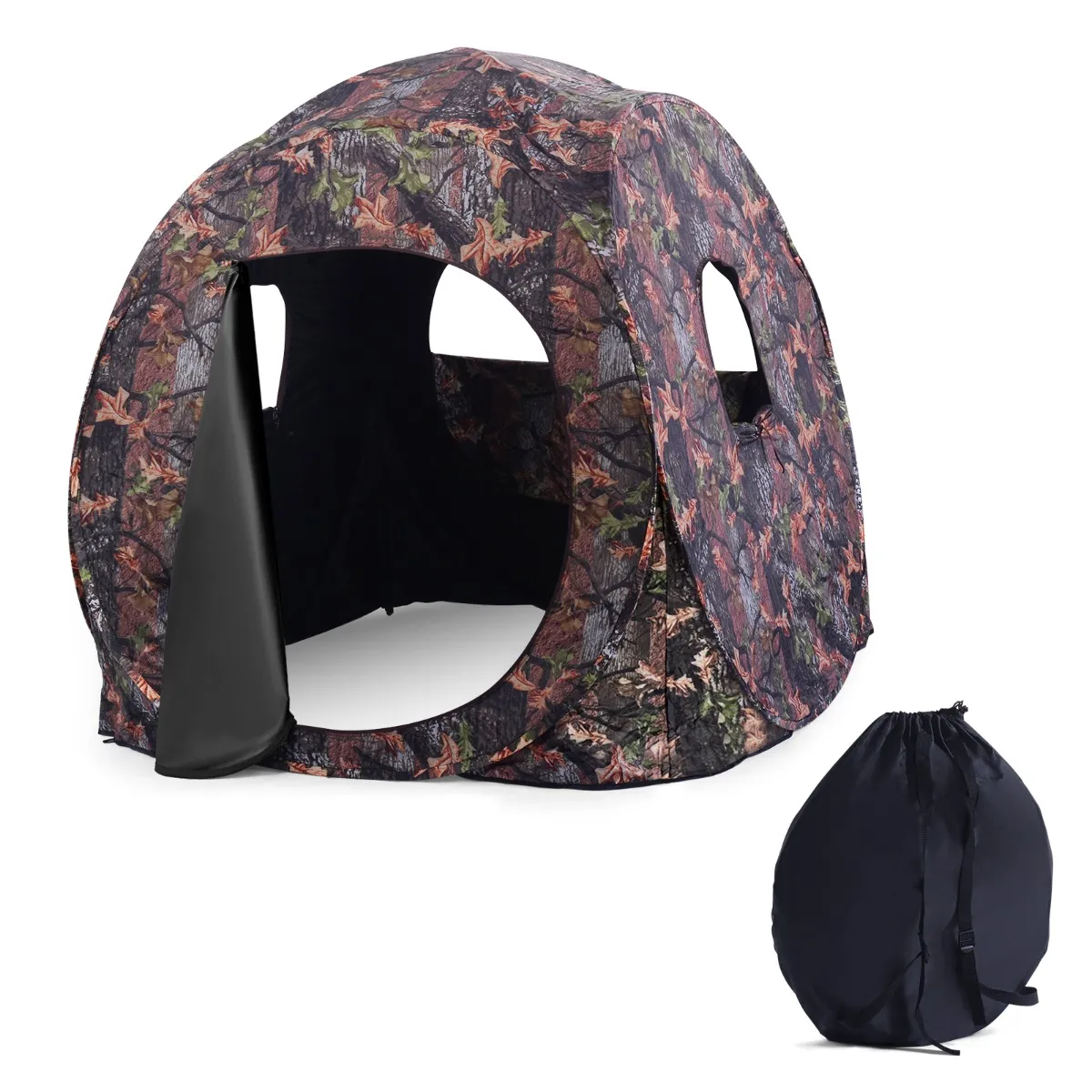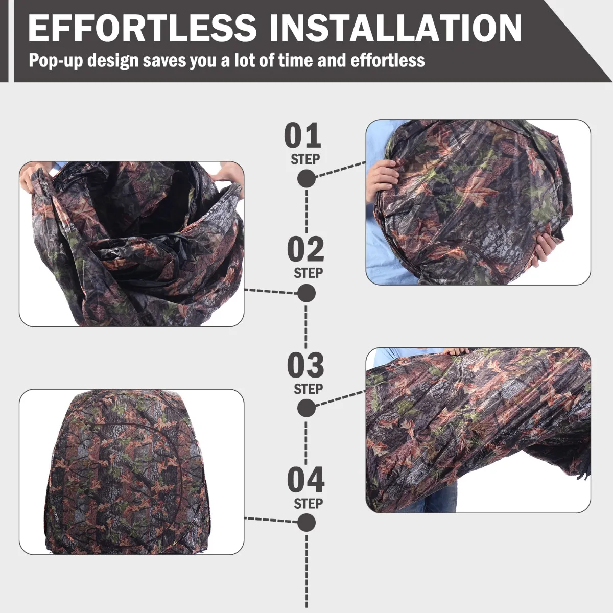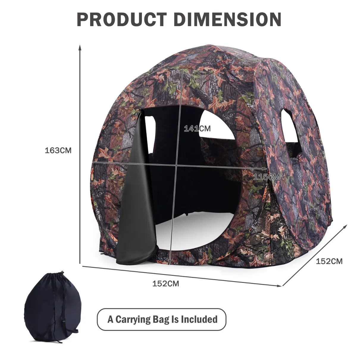 【Ruime binnenruimte】Het frame is gemaakt van roestvast stalen buizen, dus het jachthok is stevig en trekt moeilijk krom. Bovendien kunnen er in de binnenruimte van 152 x 152 cm 3 mensen samen jagen, wat betekent dat je kunt genieten van een spannende jacht met je vrienden.